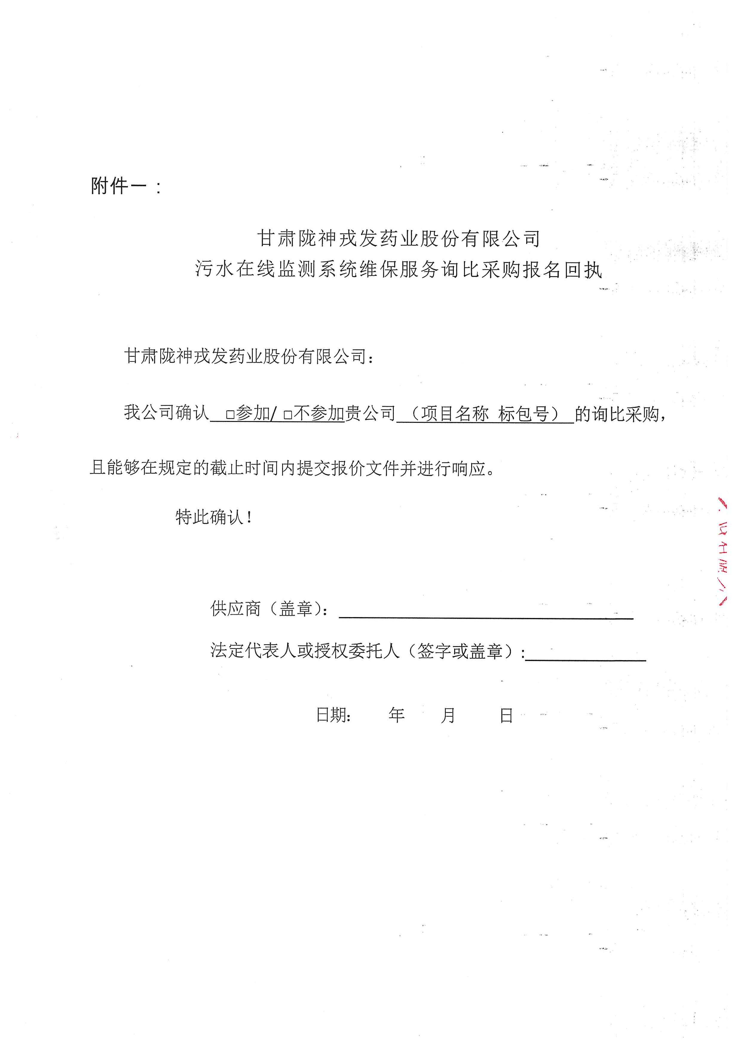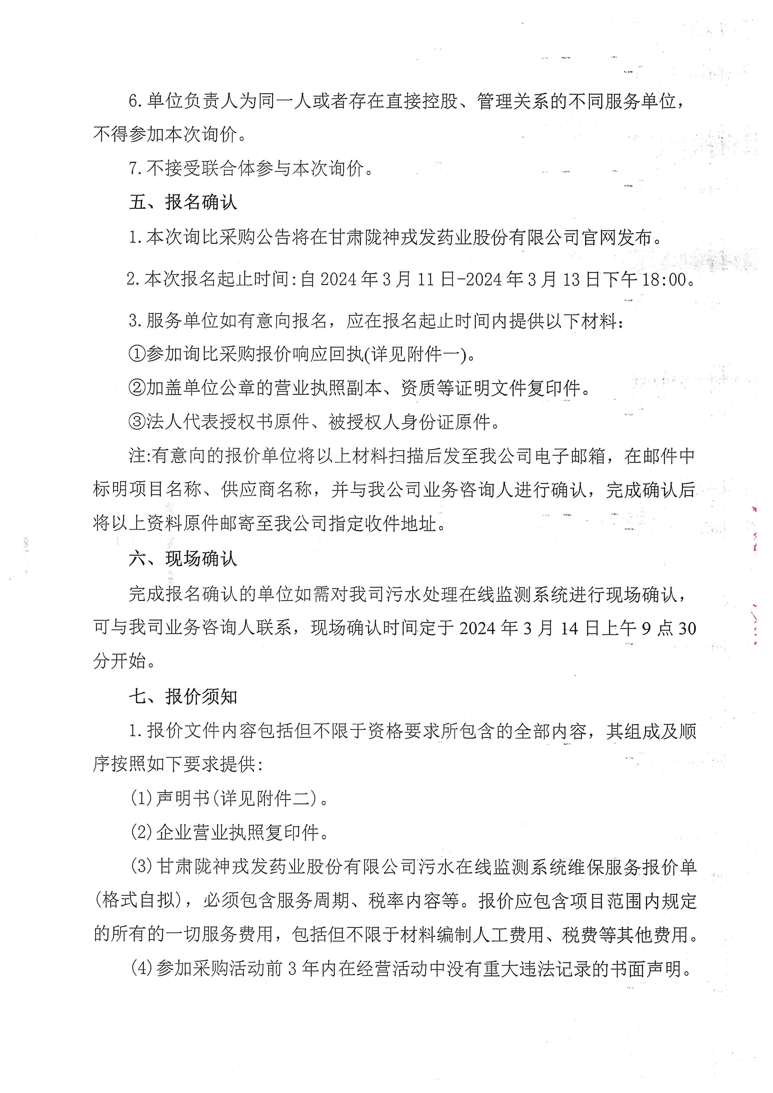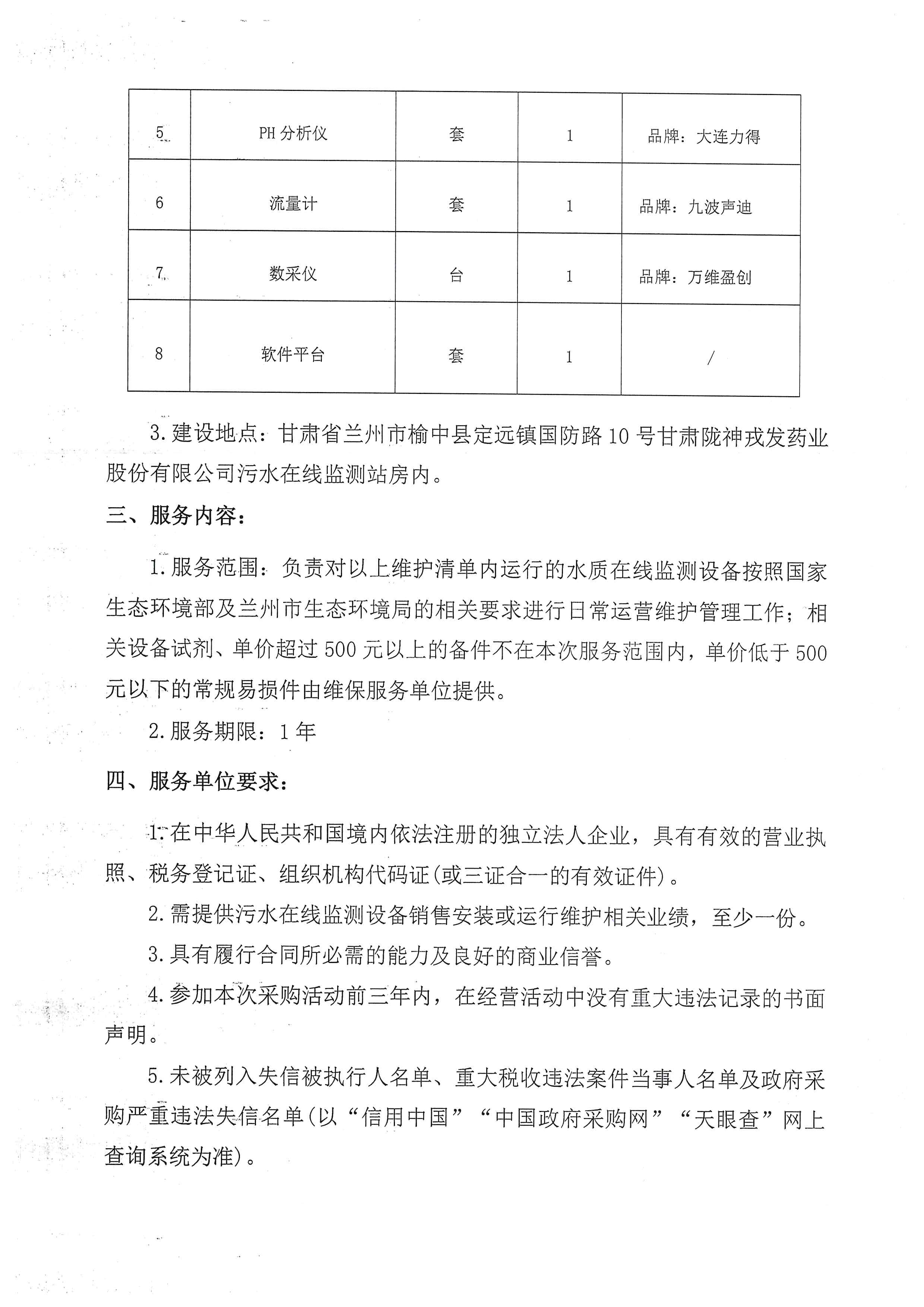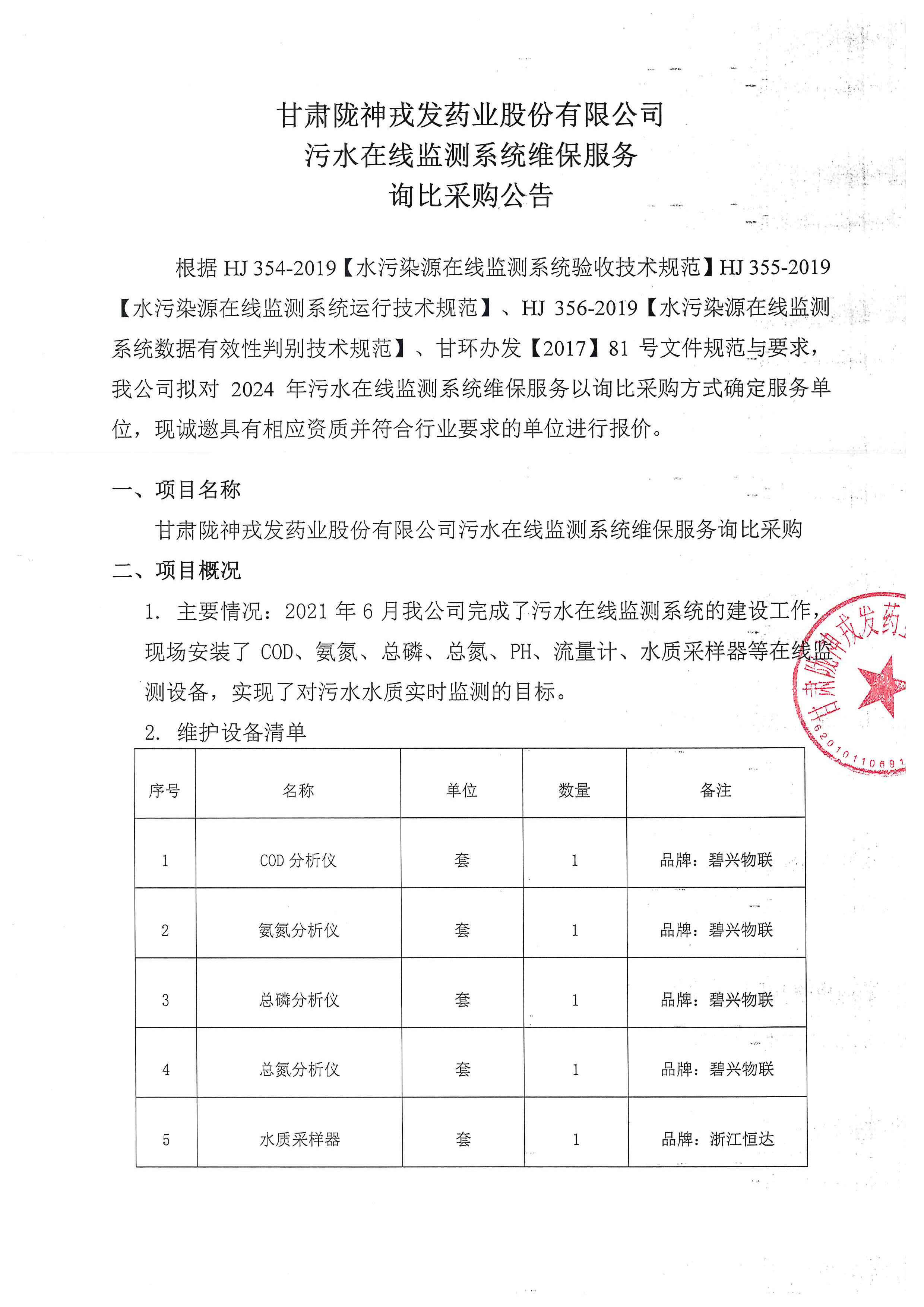 甘肅隴神戎發(fā)藥業(yè)股份有限公司污水在線監(jiān)測系統(tǒng)維保服務(wù)詢比采購公告