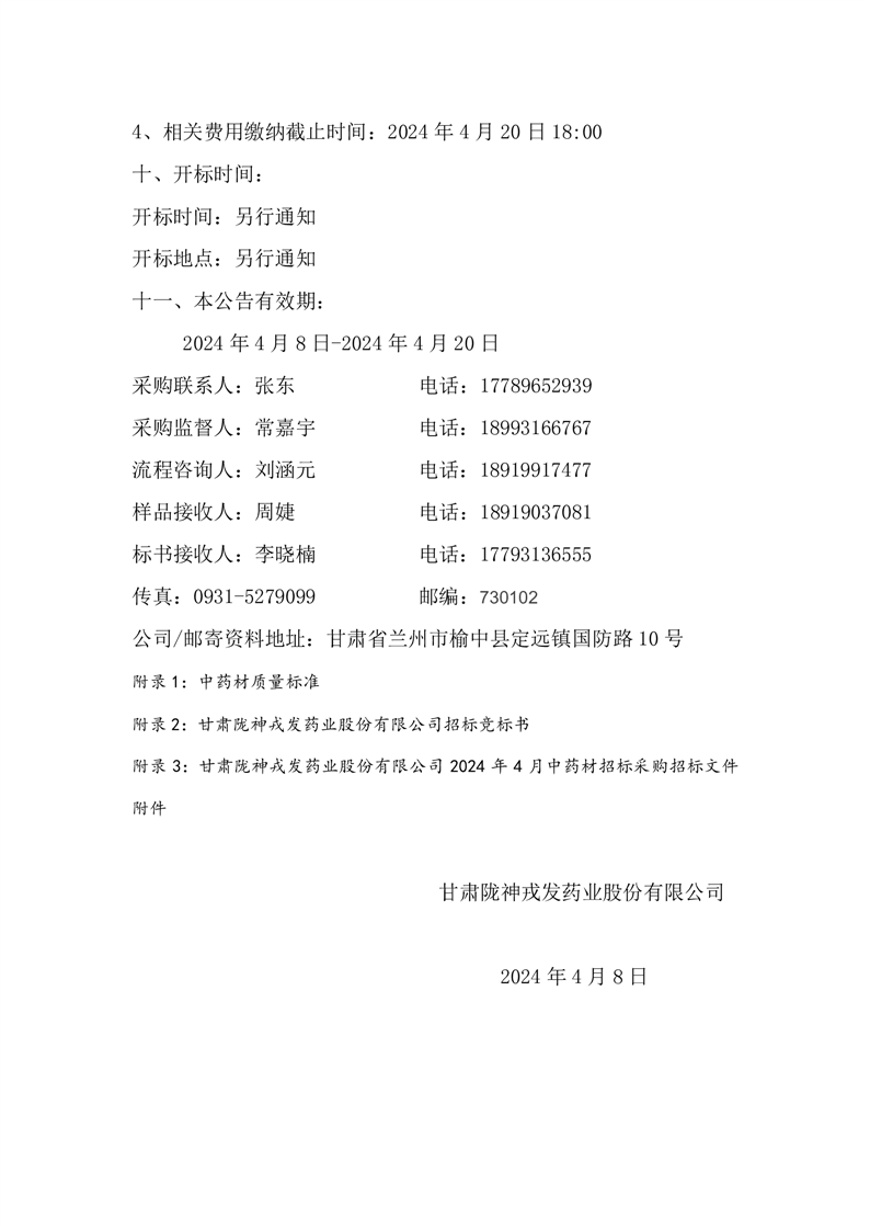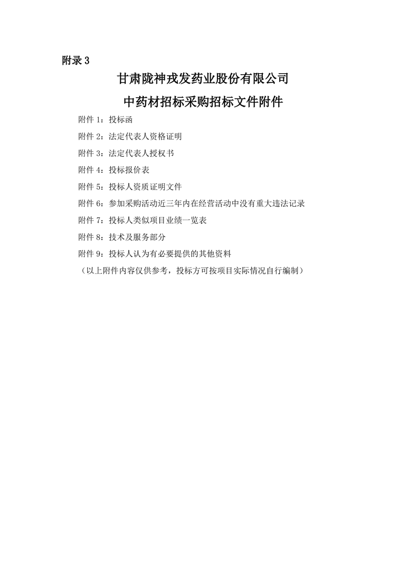 甘肅隴神戎發(fā)藥業(yè)股份有限公司 2024年4月中藥材招標采購公告