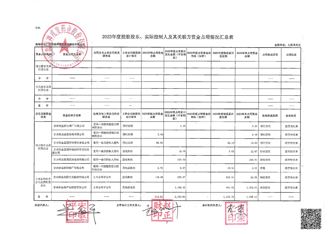 關于甘肅隴神戎發(fā)藥業(yè)股份有限公司控股股東及其他關聯(lián)方占用資金情況的專項說明