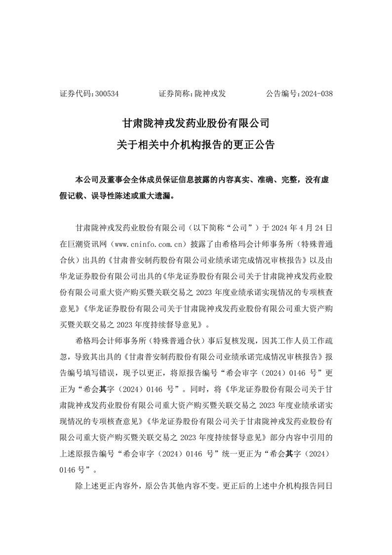 關(guān)于相關(guān)中介機(jī)構(gòu)報告的更正公告