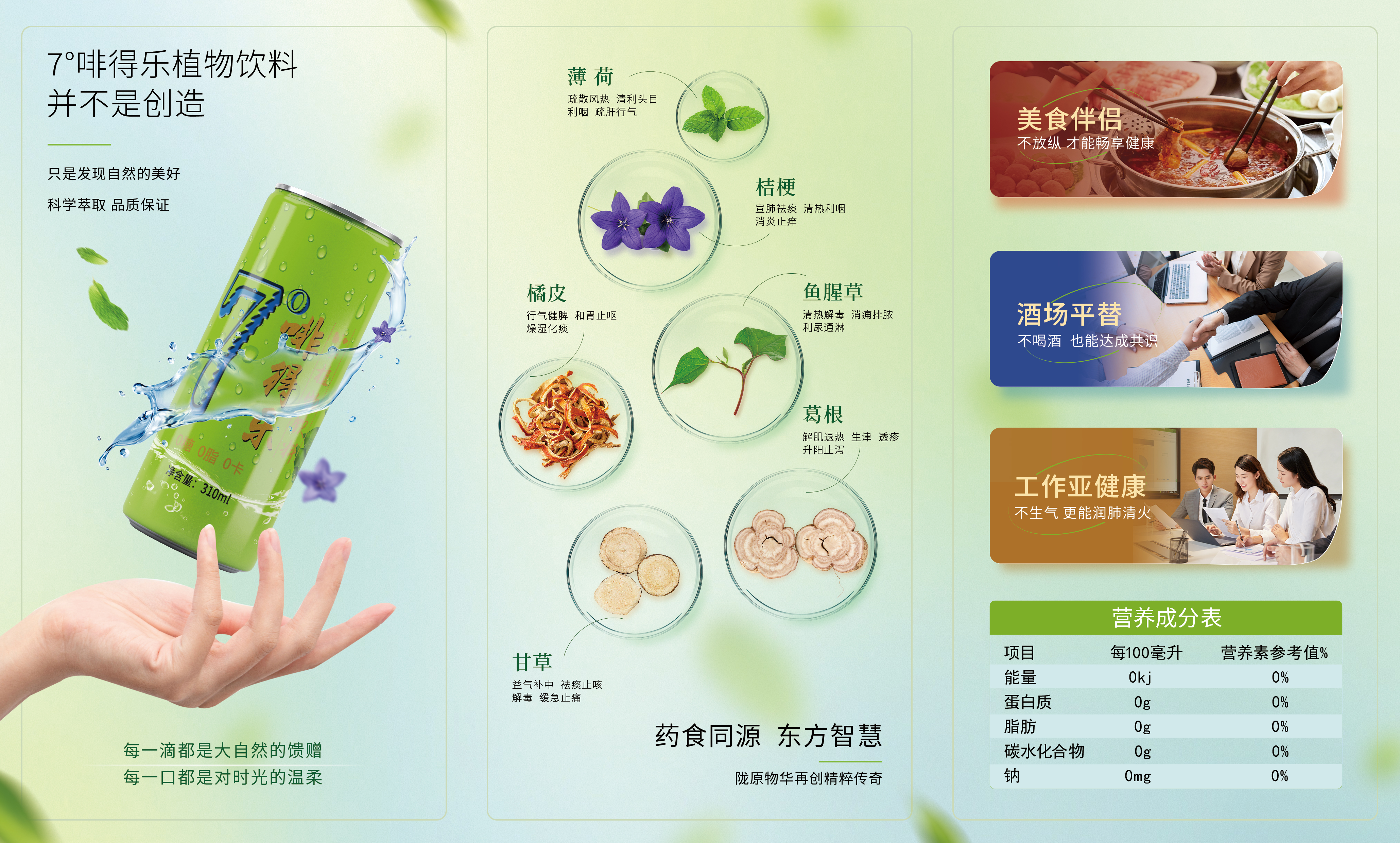 肺為嬌臟,喜潤惡燥,后疫情時代,人們開始注重運動養(yǎng)肺,飲食養(yǎng)肺,我們探索在宣肺止嗽合劑配方基礎(chǔ)上,使用了藥食同源藥材的草本植物生產(chǎn)飲品,命名為7°“啡得樂”草本飲料,寓意7°冰爽暢飲,飲出健康快樂的好“肺”。