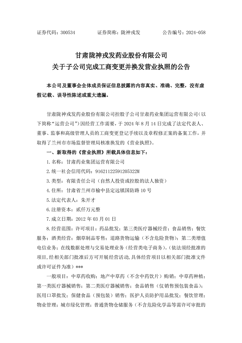 關(guān)于子公司完成工商變更并換發(fā)營業(yè)執(zhí)照的公告