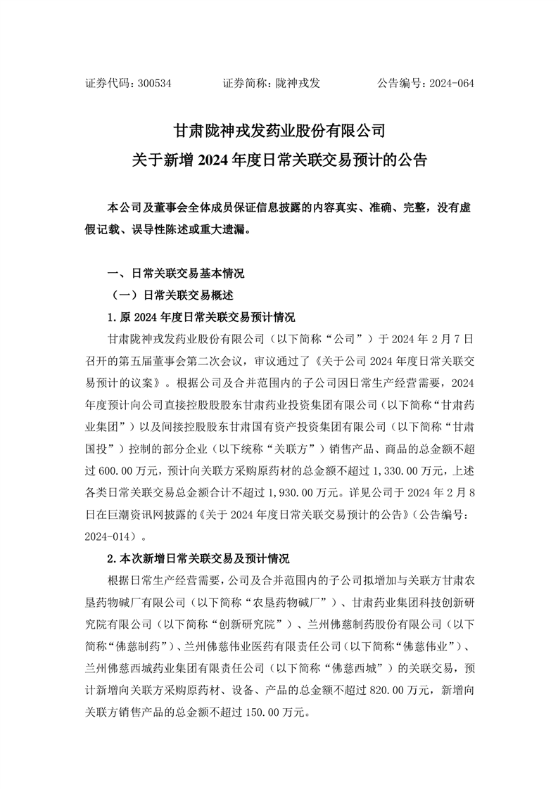 關(guān)于新增2024年度日常關(guān)聯(lián)交易預(yù)計(jì)的公告