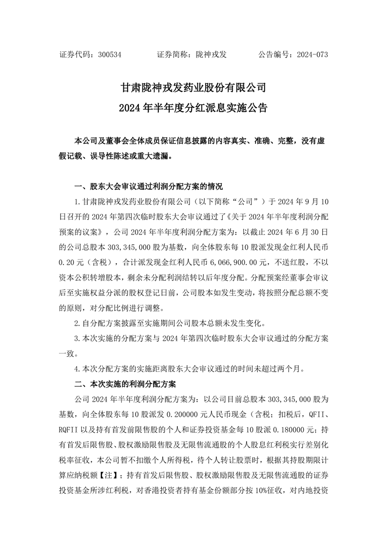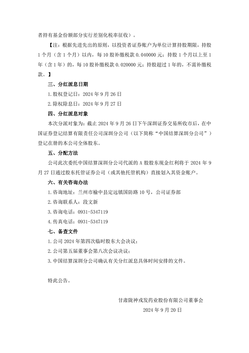 2024年半年度分紅派息實(shí)施公告