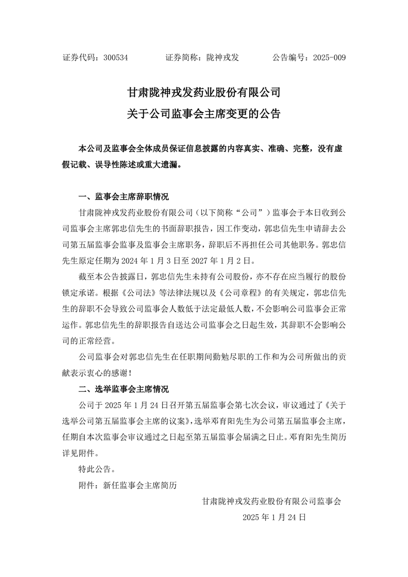 關(guān)于公司監(jiān)事會(huì)主席變更的公告