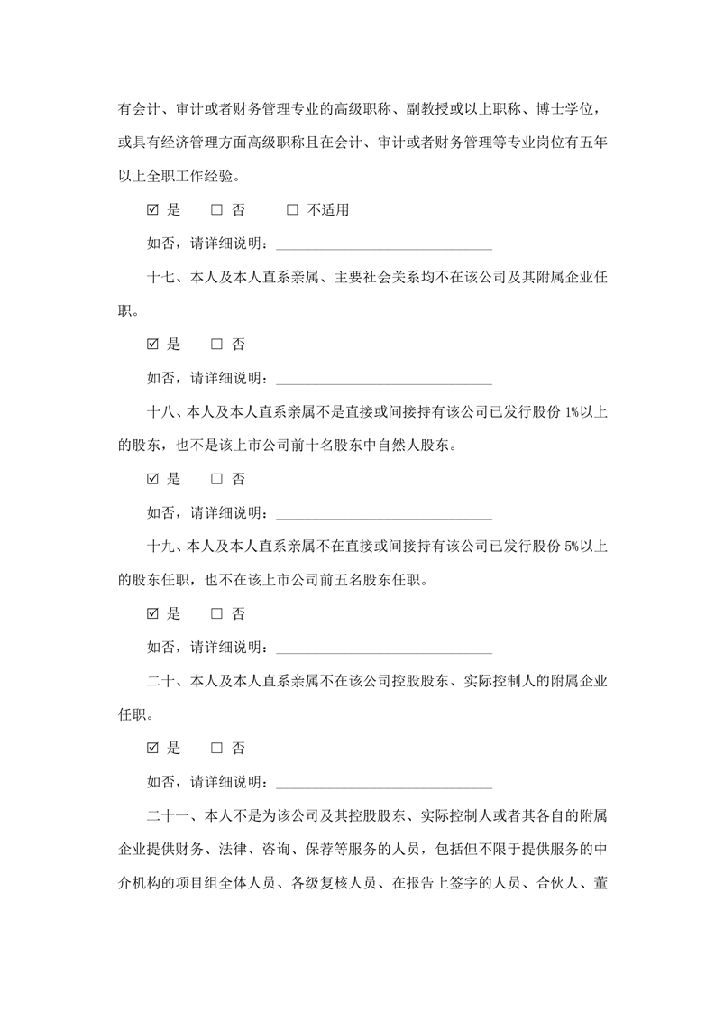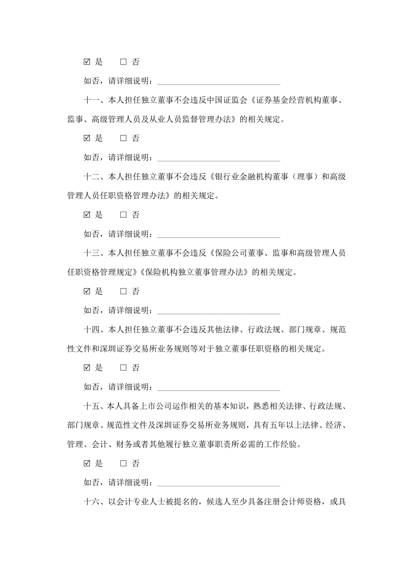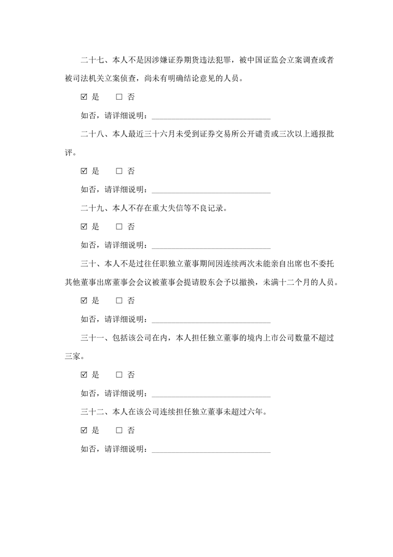 獨(dú)立董事候選人聲明與承諾