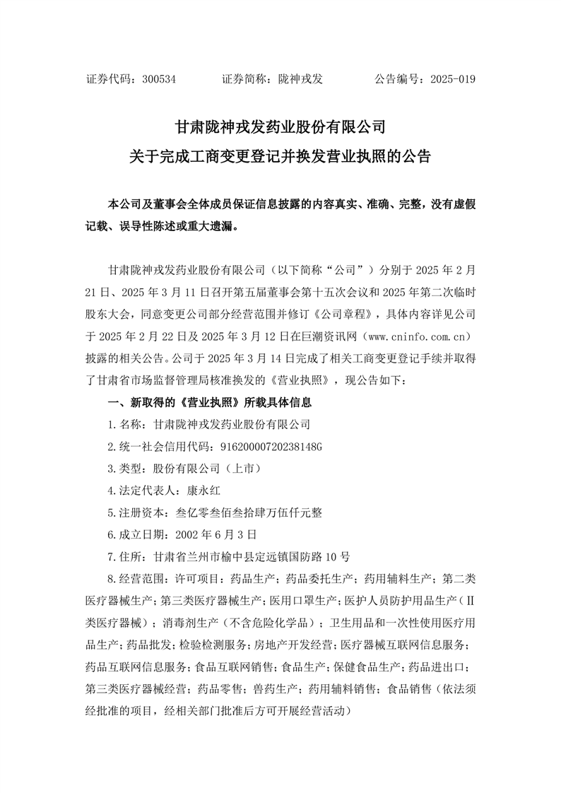 關(guān)于完成工商變更登記并換發(fā)營業(yè)執(zhí)照的公告
