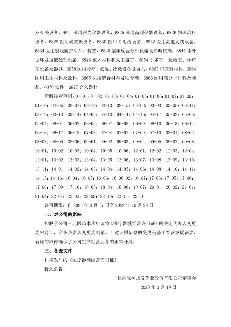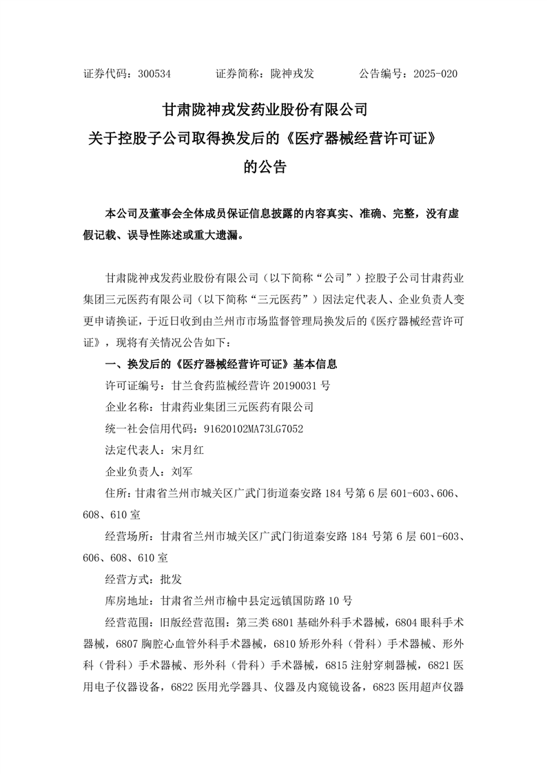 關于控股子公司取得換發(fā)后的《醫(yī)療器械經營許可證》的公告