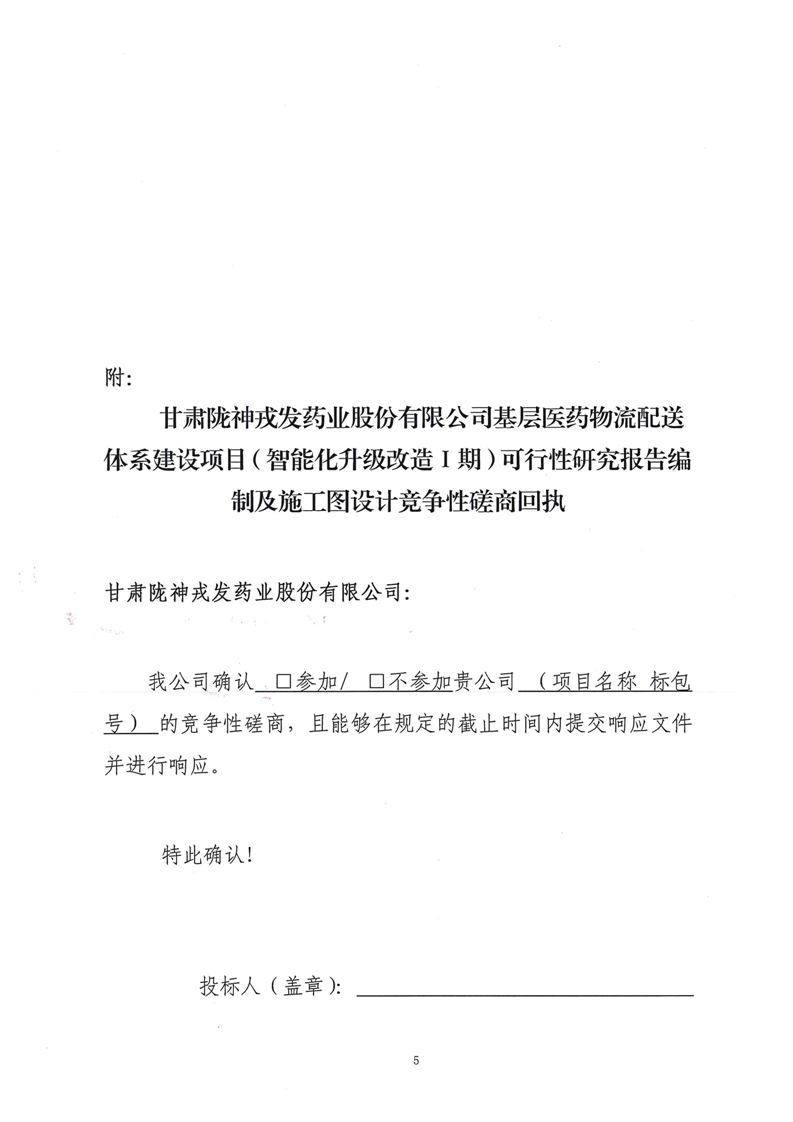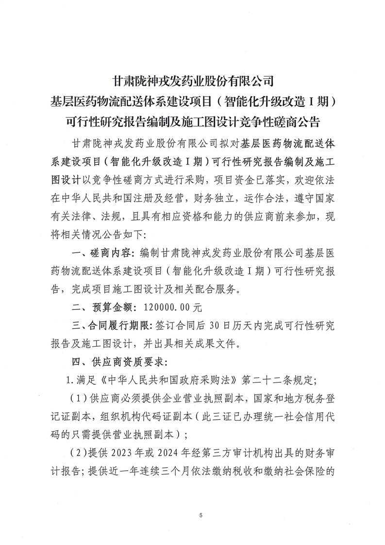 甘肅隴神戎發(fā)藥業(yè)股份有限公司基層醫(yī)藥物流配送體系建設(shè)項目(智能化升級改造Ⅰ期)可行性研究報告編制及施工圖設(shè)計競爭性磋商公告