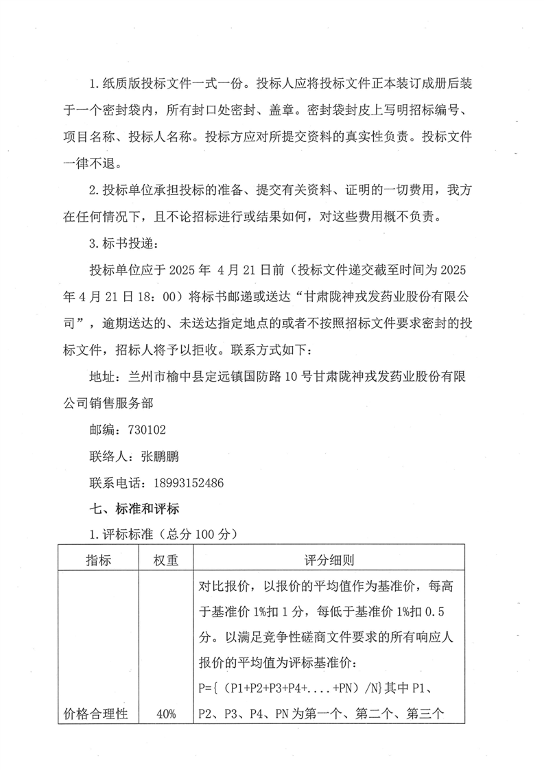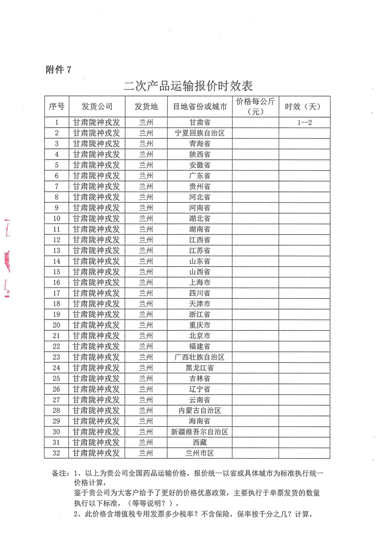 甘肅隴神戎發(fā)藥業(yè)股份有限公司物流運(yùn)輸招標(biāo)公告