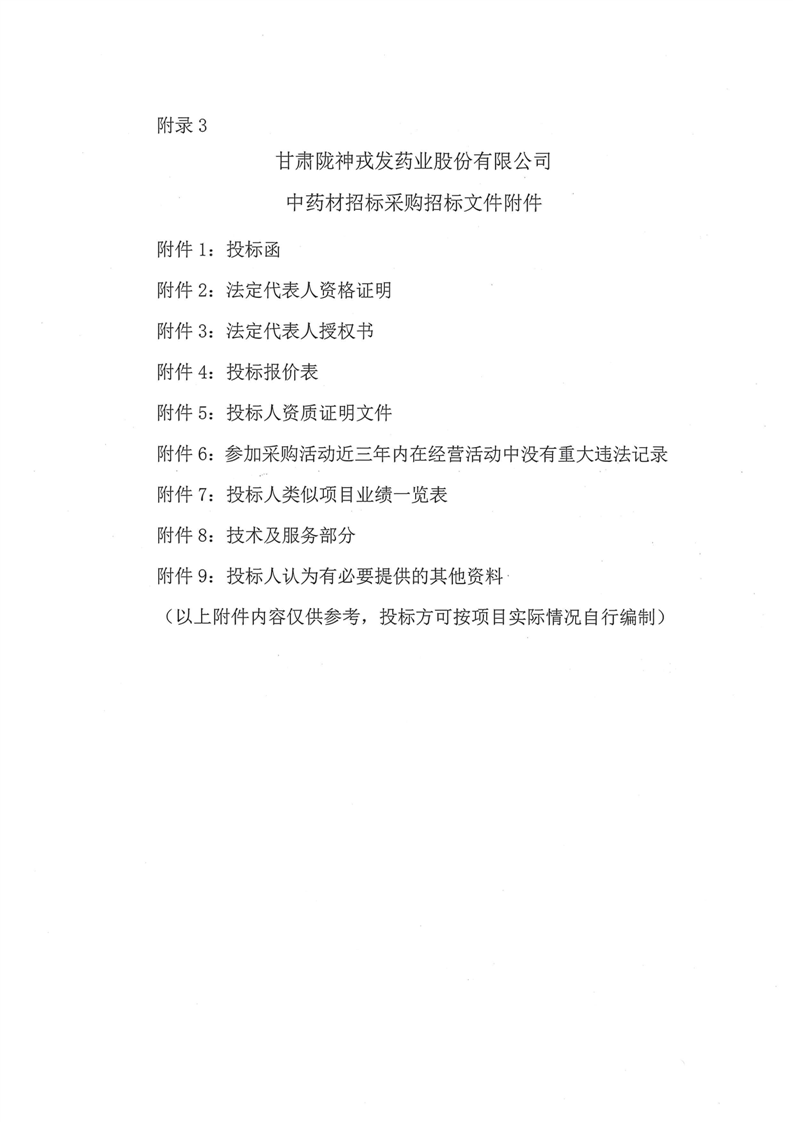 甘肅隴神戎發(fā)藥業(yè)股份有限公司2024年9月中藥材招標(biāo)采購公告