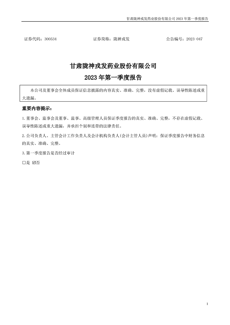 2023年一季度報告