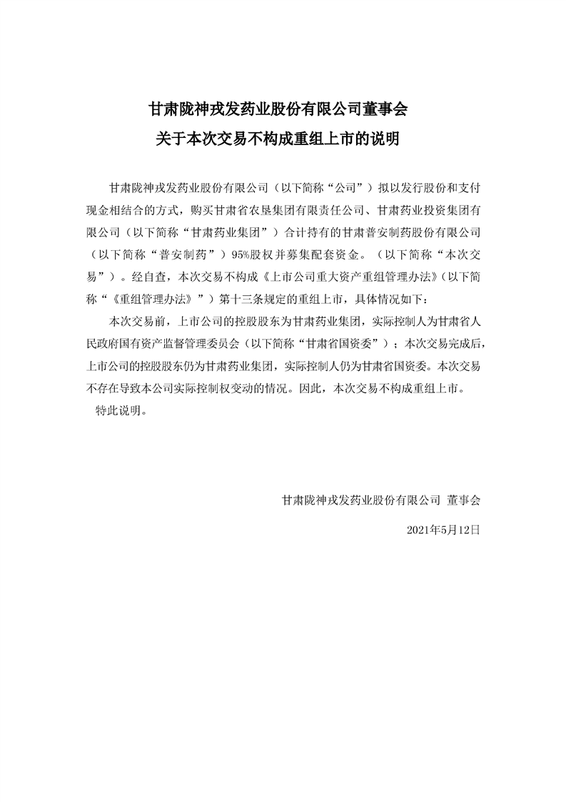 董事會(huì)關(guān)于本次交易不構(gòu)成重組上市的說明