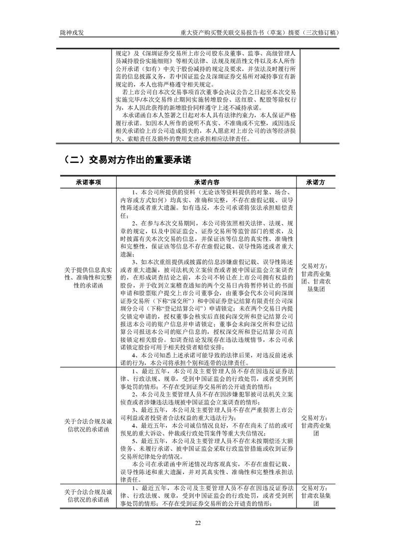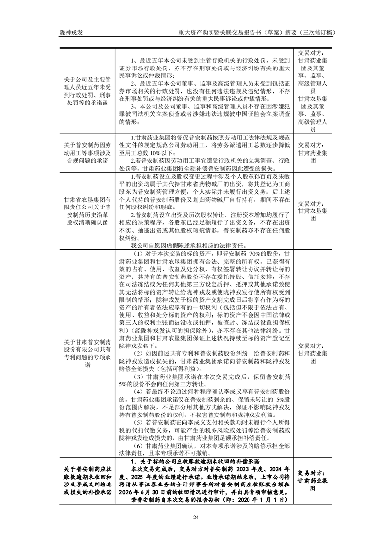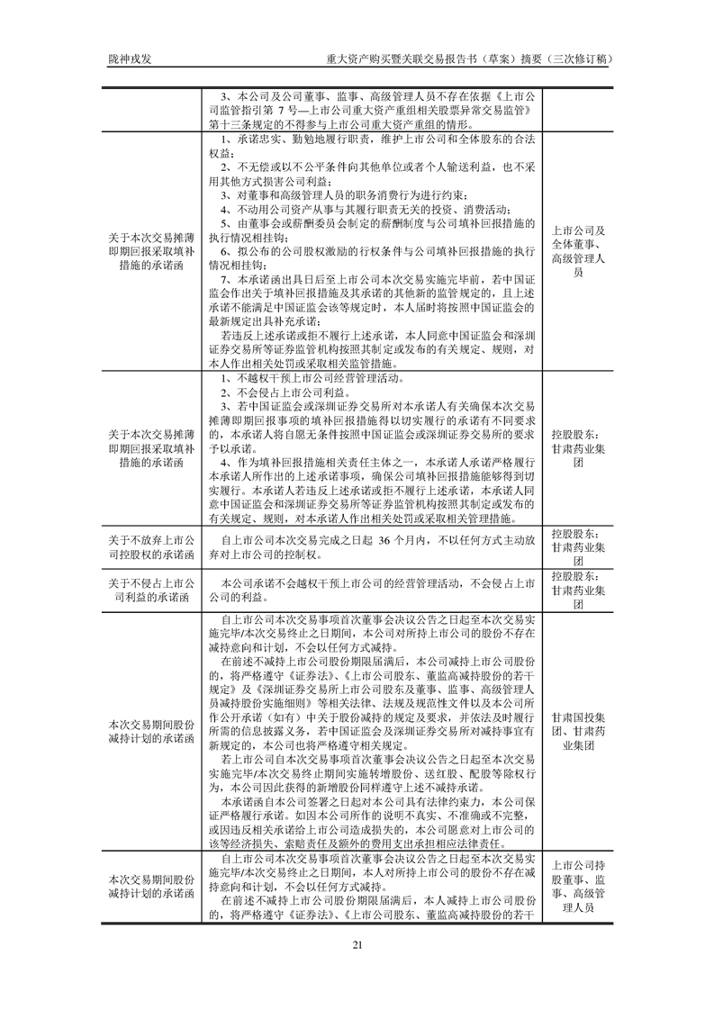 甘肅隴神戎發(fā)藥業(yè)股份有限公司重大資產(chǎn)購買暨關(guān)聯(lián)交易報(bào)告書(草案)摘要(三次修訂稿)