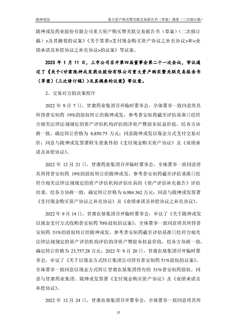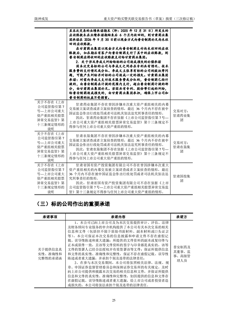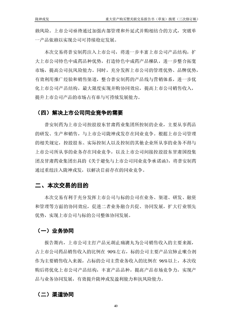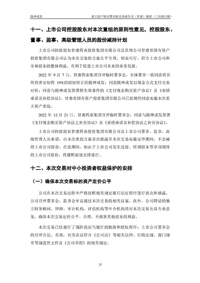 甘肅隴神戎發(fā)藥業(yè)股份有限公司重大資產(chǎn)購買暨關(guān)聯(lián)交易報(bào)告書(草案)摘要(三次修訂稿)
