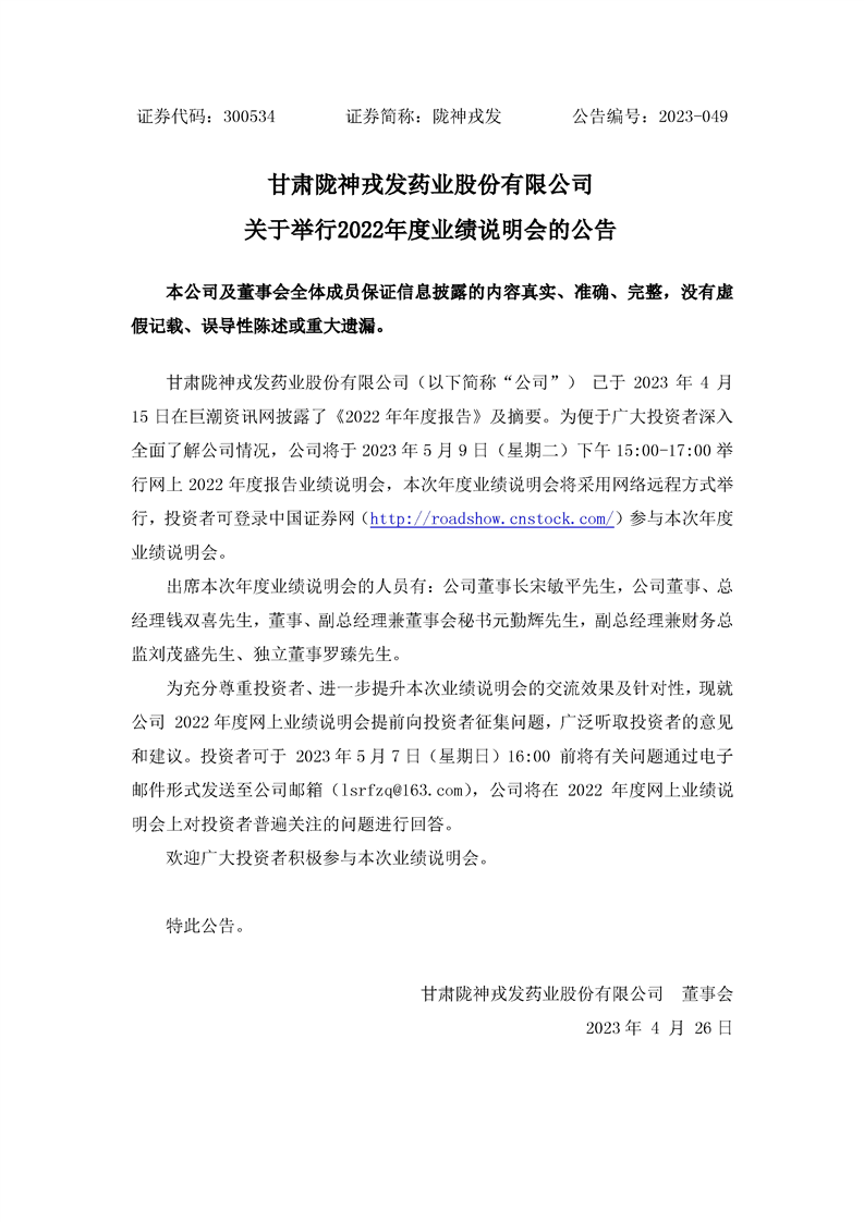 關(guān)于舉行2022年度業(yè)績(jī)說明會(huì)的公告