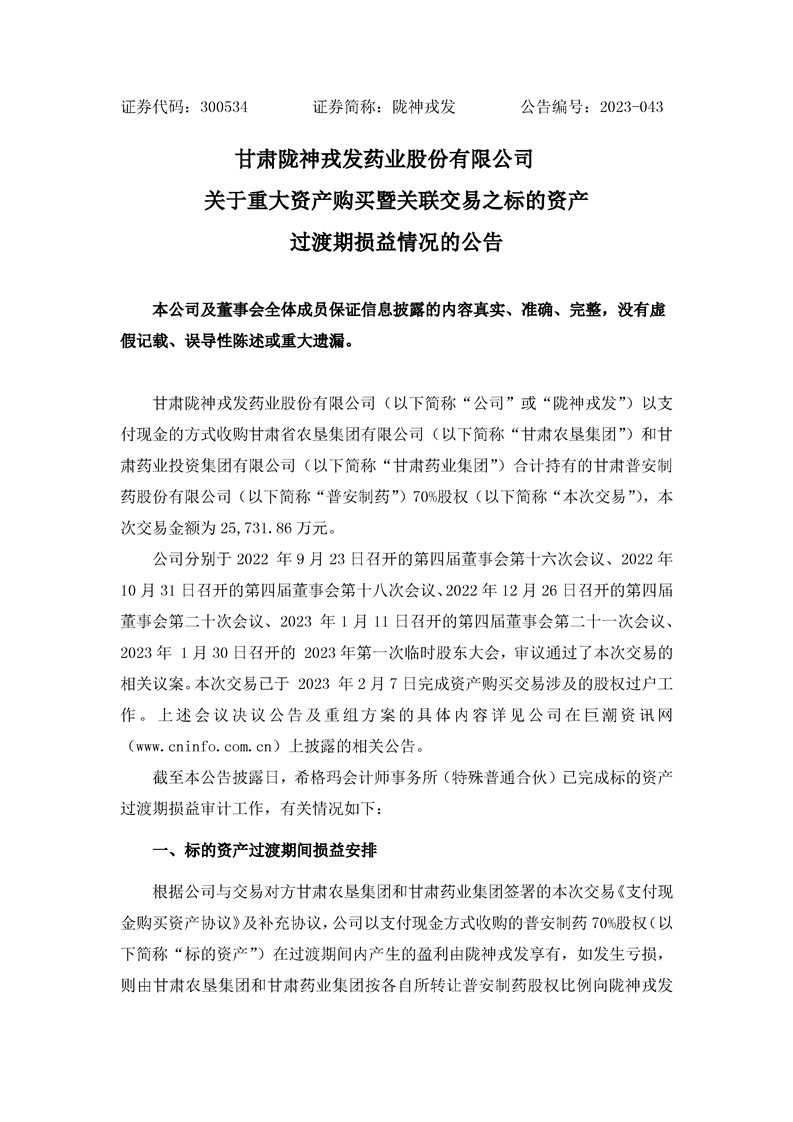 關(guān)于重大資產(chǎn)購買暨關(guān)聯(lián)交易之標(biāo)的資產(chǎn)過渡期損益情況的公告