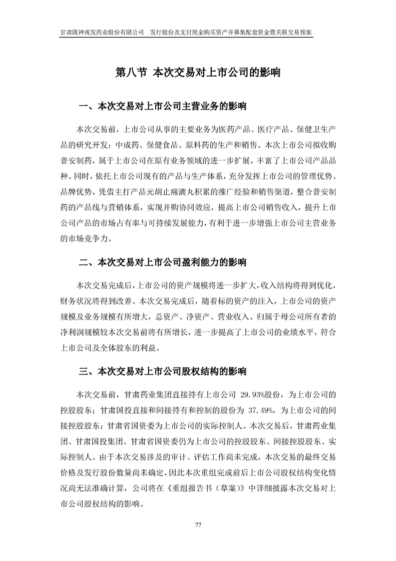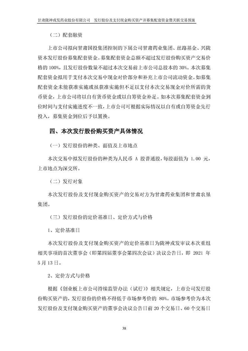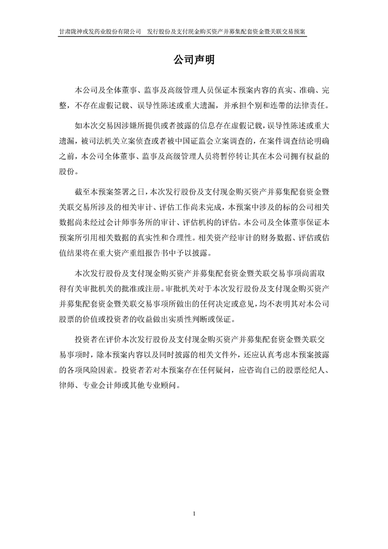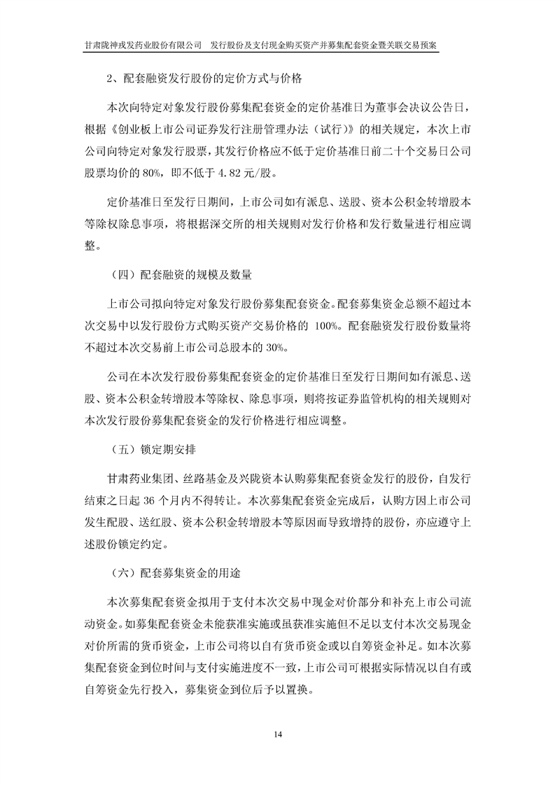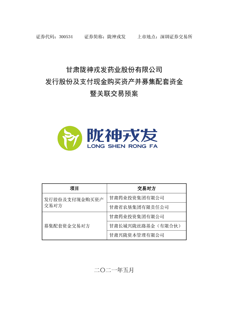 甘肅隴神戎發(fā)藥業(yè)股份有限公司發(fā)行股份及支付現(xiàn)金購(gòu)買資產(chǎn)并募集配套資金暨關(guān)聯(lián)交易預(yù)案