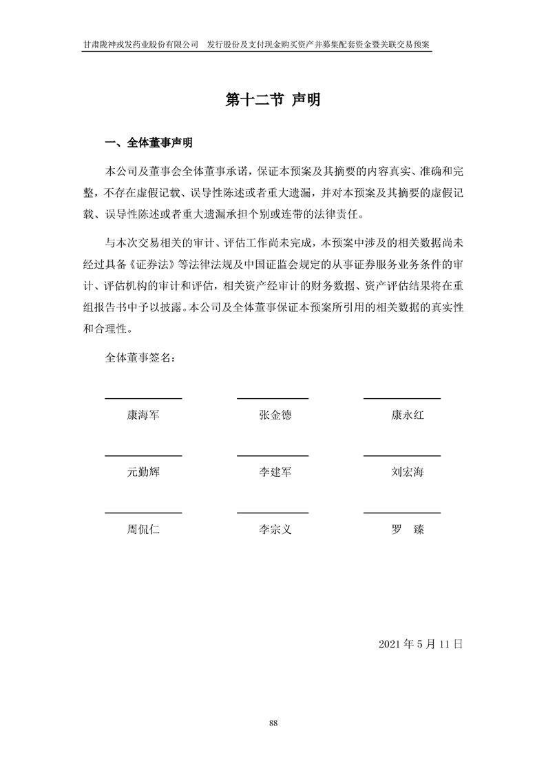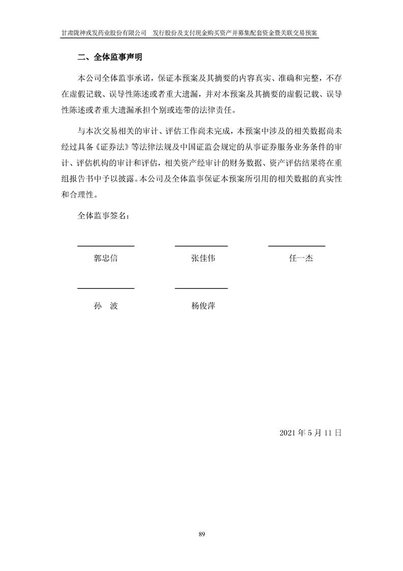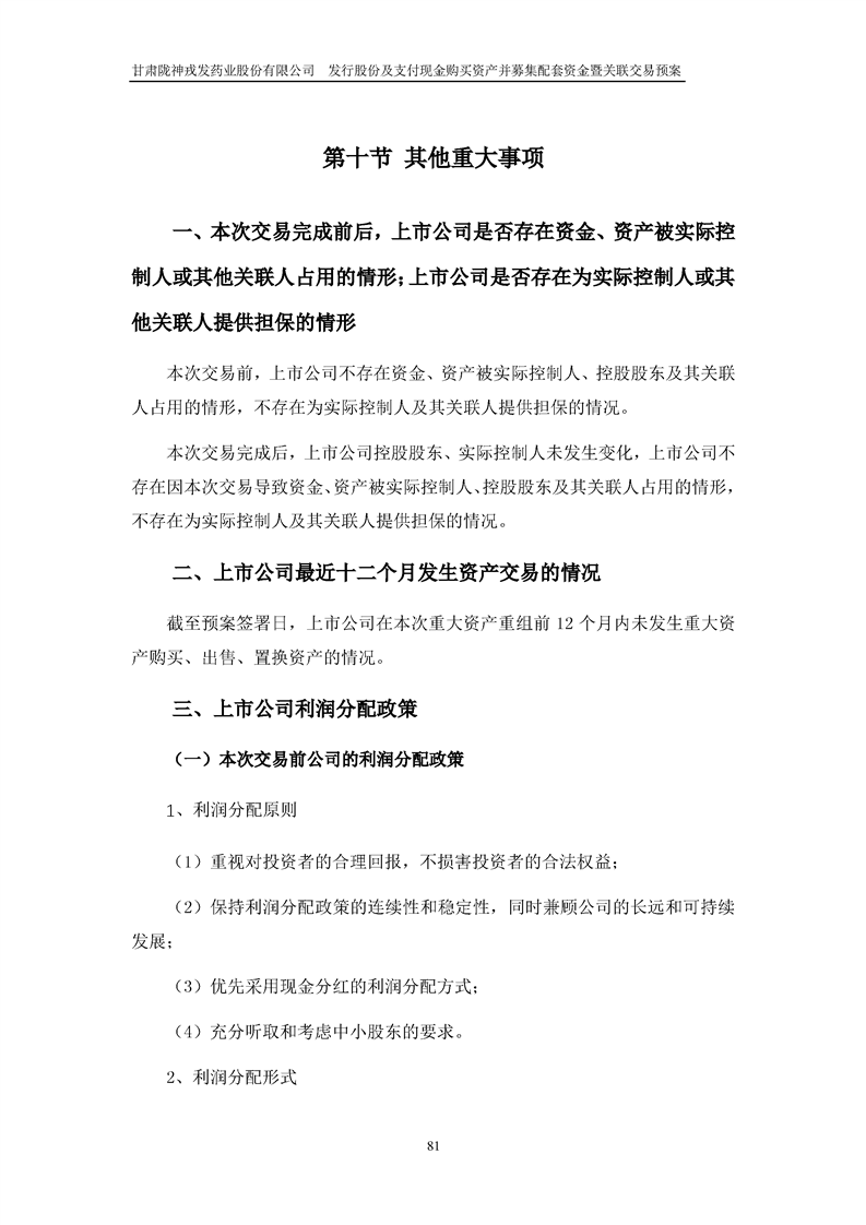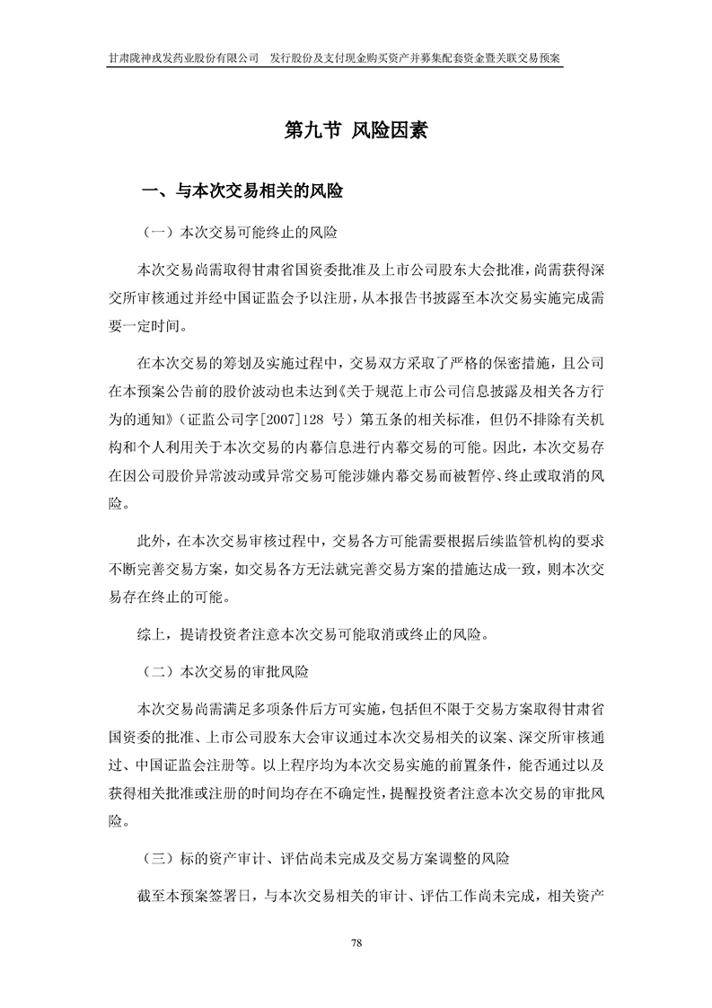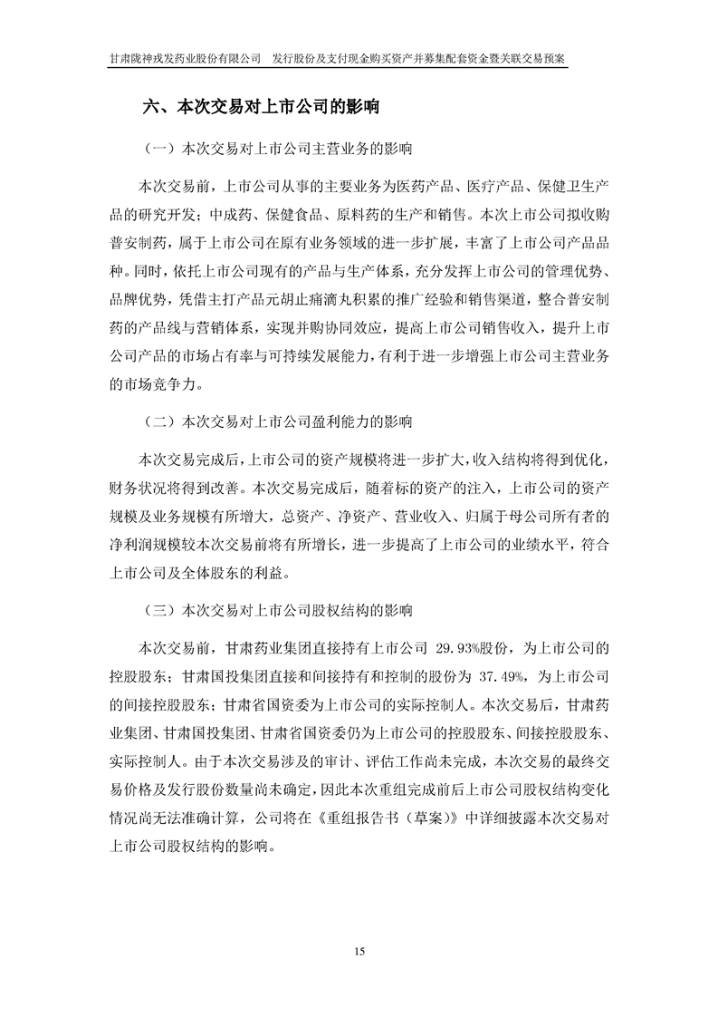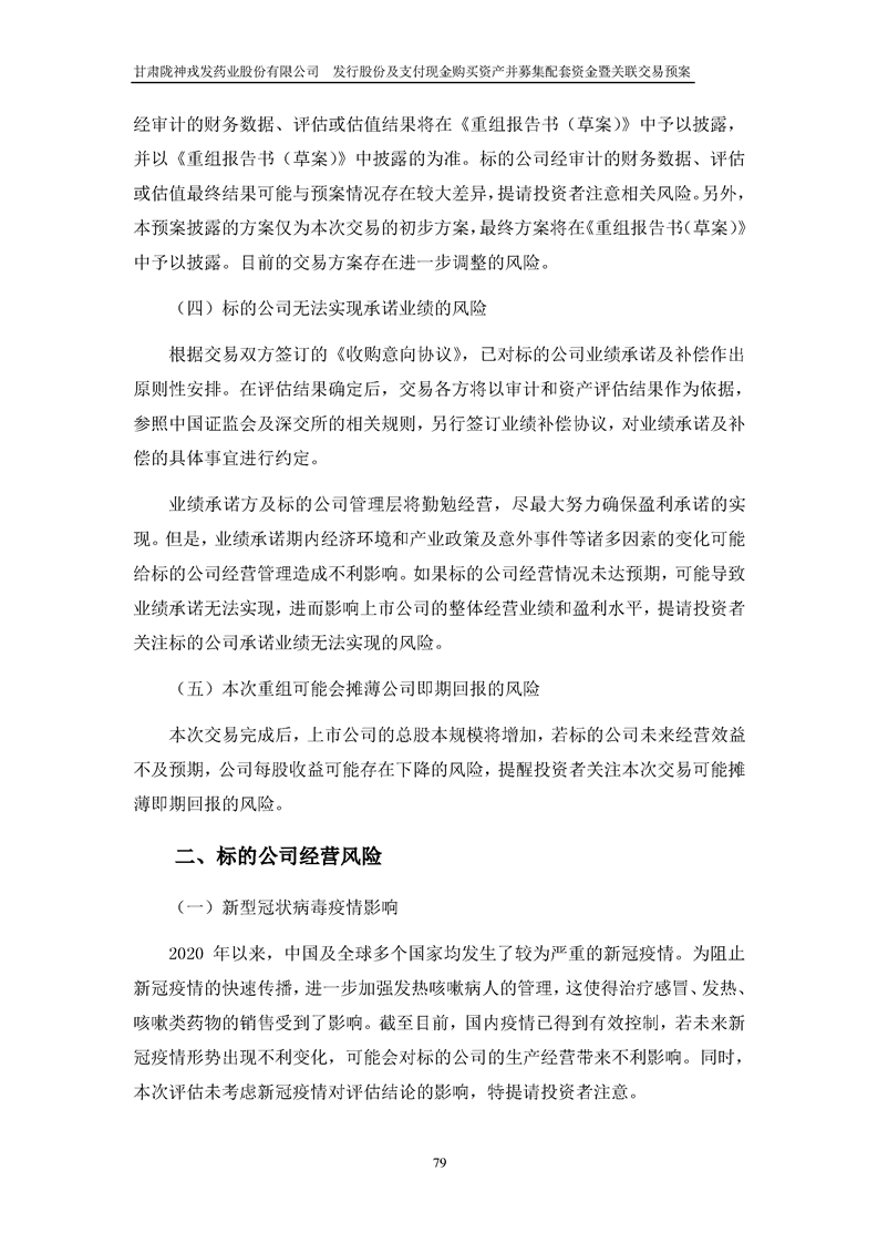 甘肅隴神戎發(fā)藥業(yè)股份有限公司發(fā)行股份及支付現(xiàn)金購(gòu)買資產(chǎn)并募集配套資金暨關(guān)聯(lián)交易預(yù)案
