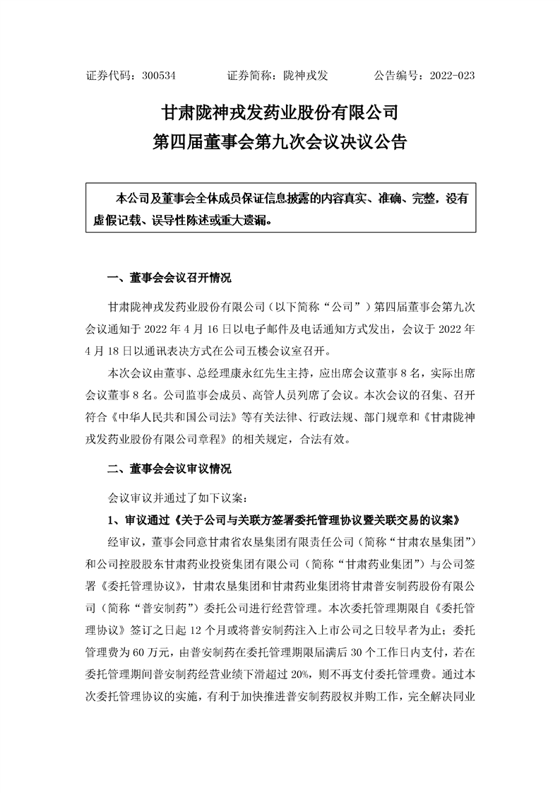 第四屆董事會(huì)第九次會(huì)議決議公告