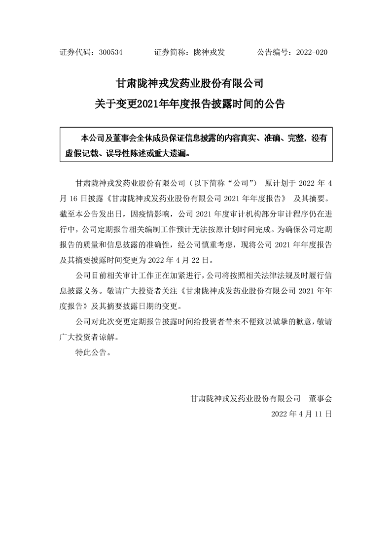關于變更2021年年度報告披露時間的公告