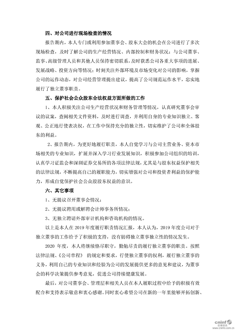2019年獨立董事述職報告(萬紅波)