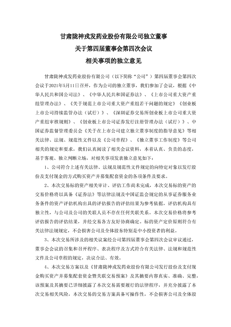 獨(dú)立董事關(guān)于第四屆董事會(huì)第四次會(huì)議相關(guān)事項(xiàng)的獨(dú)立意見