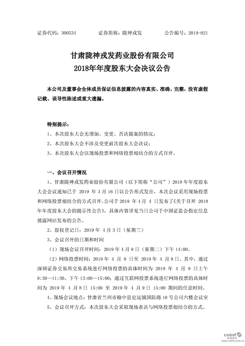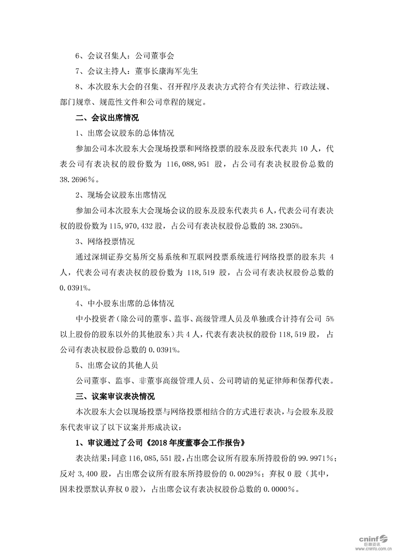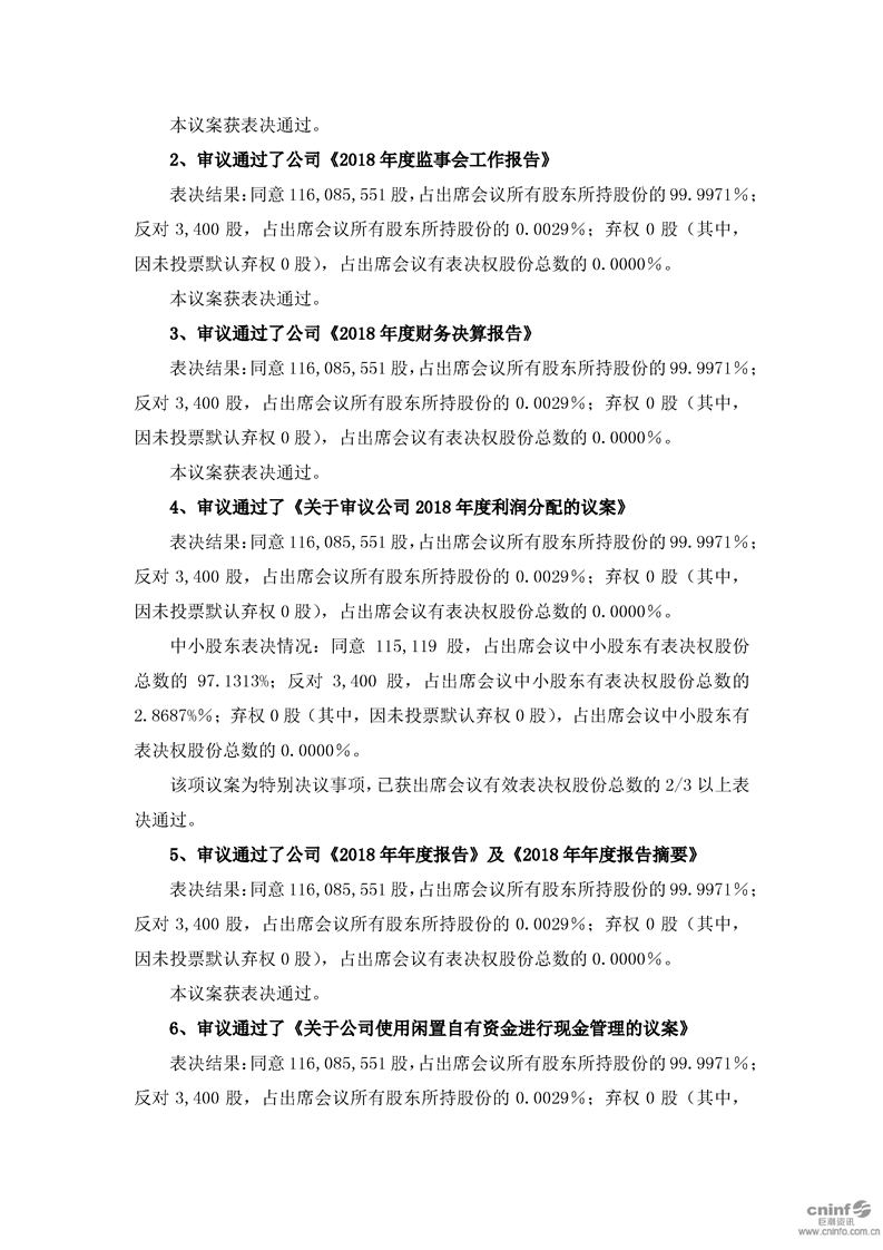 2018年年度股東大會決議公告