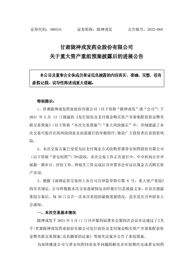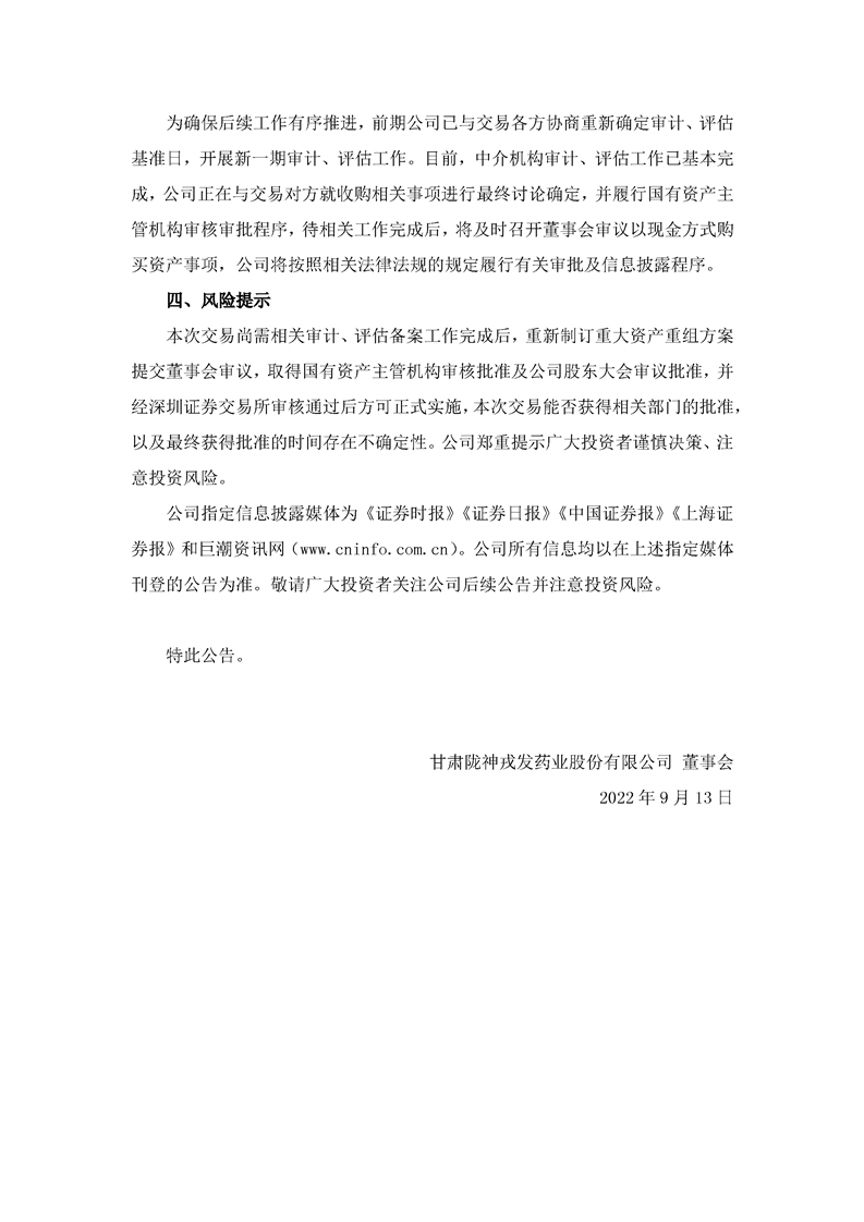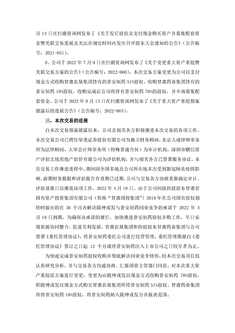 關(guān)于重大資產(chǎn)重組預(yù)案披露后的進(jìn)展公告