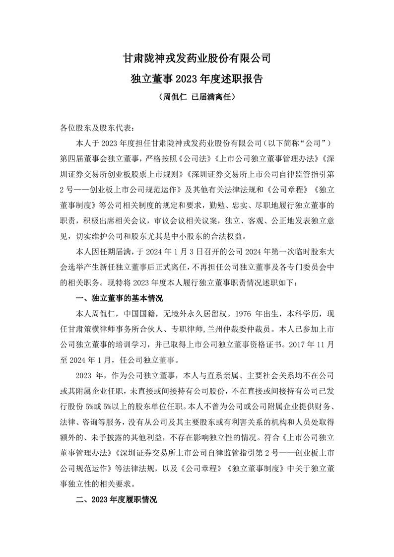 2023年度獨立董事述職報告(周侃仁 已屆滿離任)