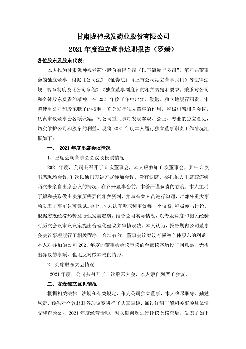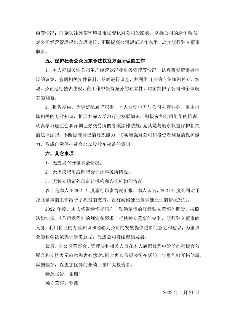 2021年獨(dú)立董事述職報告(羅臻)