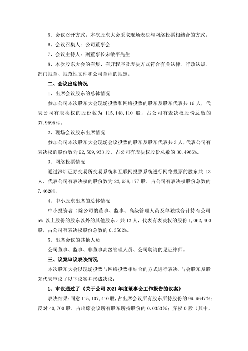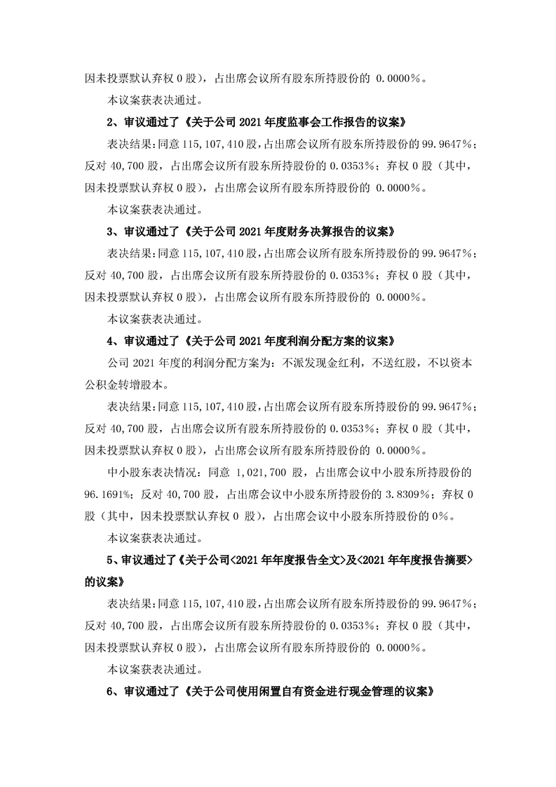 2021年年度股東大會(huì)決議公告