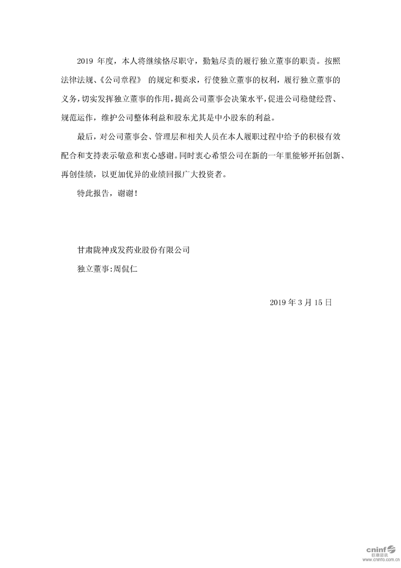 獨(dú)立董事述職報(bào)告(周侃仁)