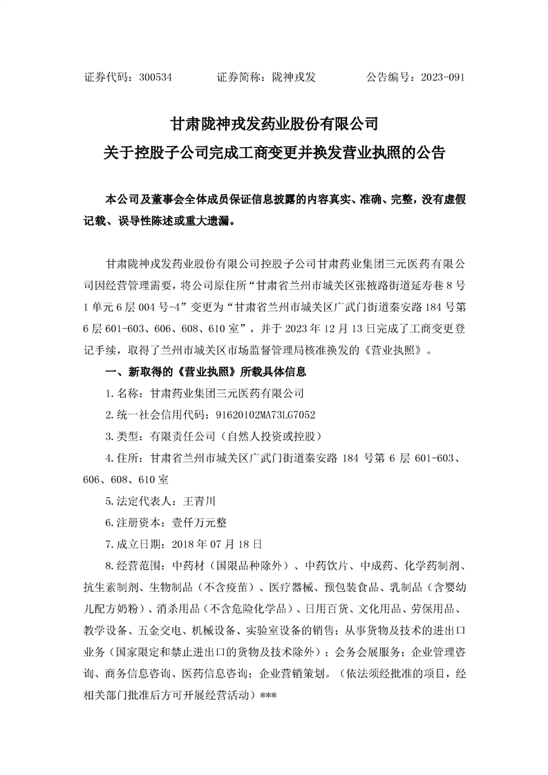 關(guān)于控股子公司完成工商變更并換發(fā)營業(yè)執(zhí)照的公告
