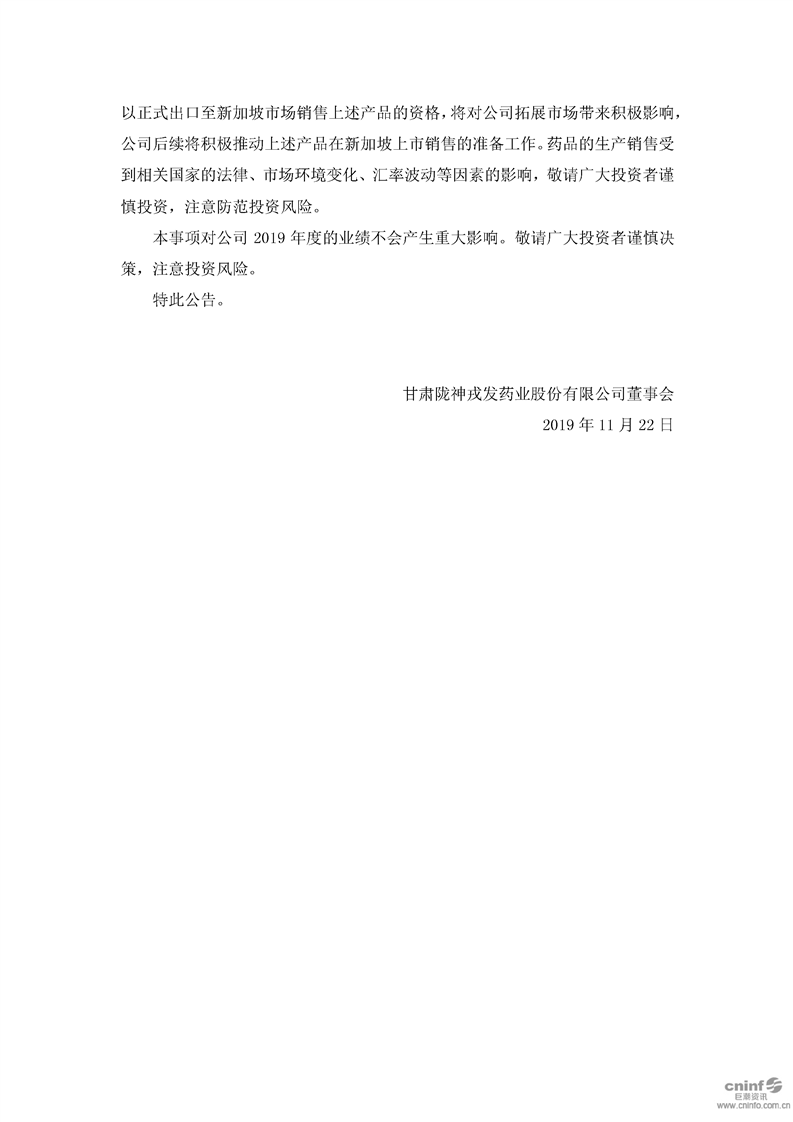 關(guān)于公司藥品獲得新加坡共和國注冊備案許可的公告
