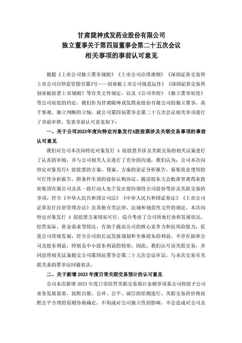 獨立董事關(guān)于第四屆董事會第二十五次會議相關(guān)事項的事前認可意見