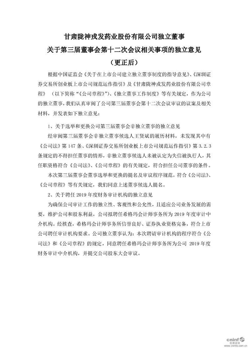 獨(dú)立董事關(guān)于第三屆董事會(huì)第十二次會(huì)議相關(guān)事項(xiàng)的獨(dú)立意見(更新后)