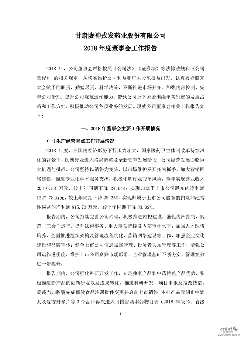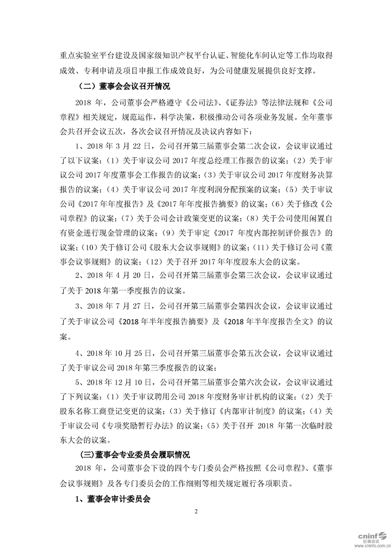 2018 年度董事會工作報(bào)告