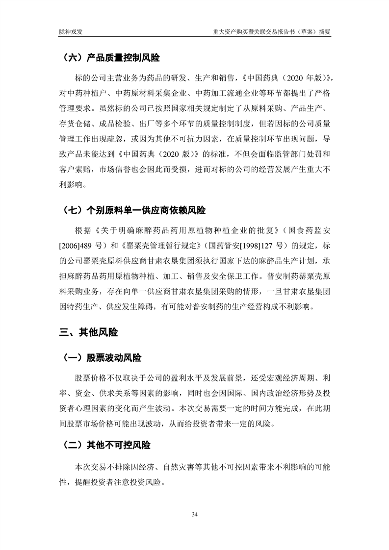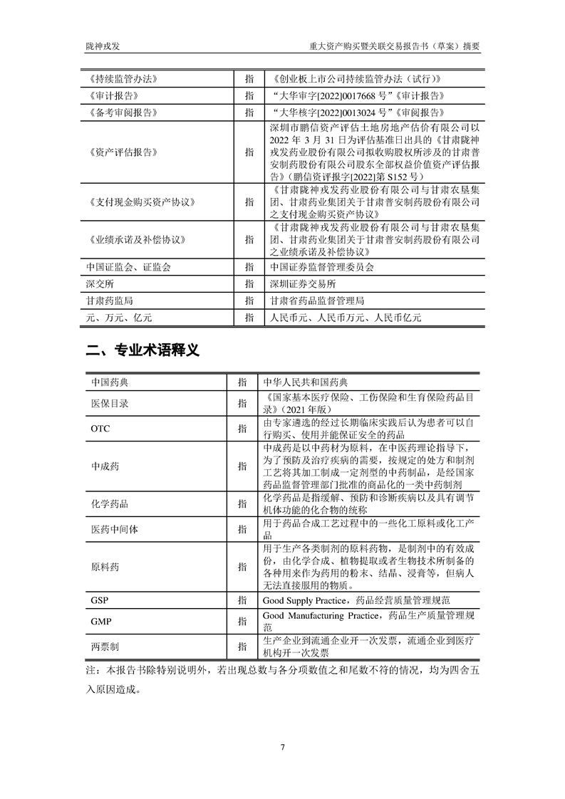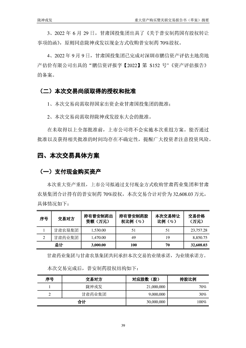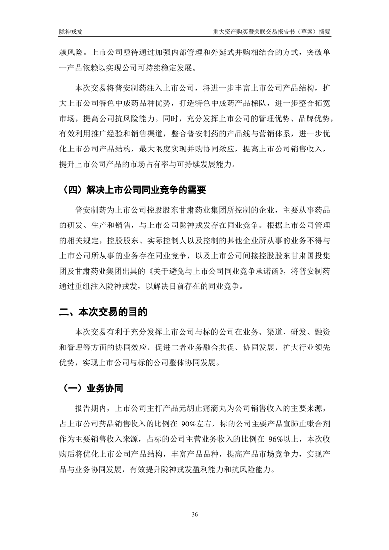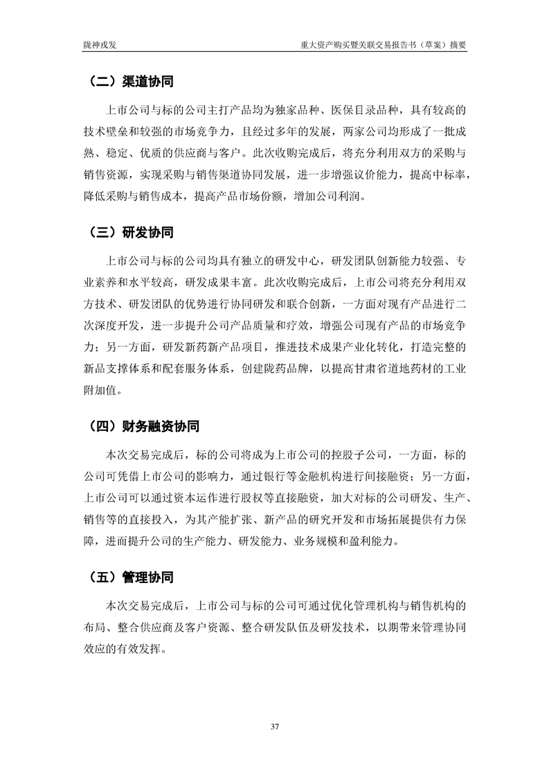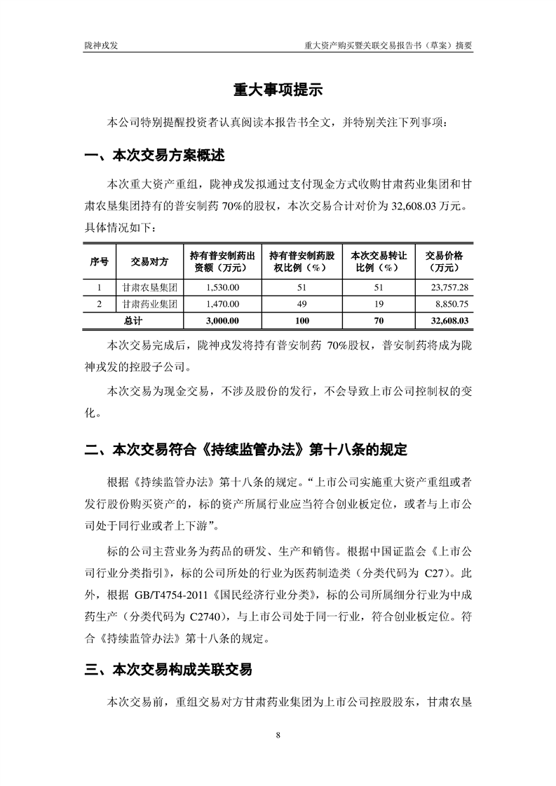 甘肅隴神戎發(fā)藥業(yè)股份有限公司重大資產(chǎn)購(gòu)買暨關(guān)聯(lián)交易報(bào)告書(草案)摘要