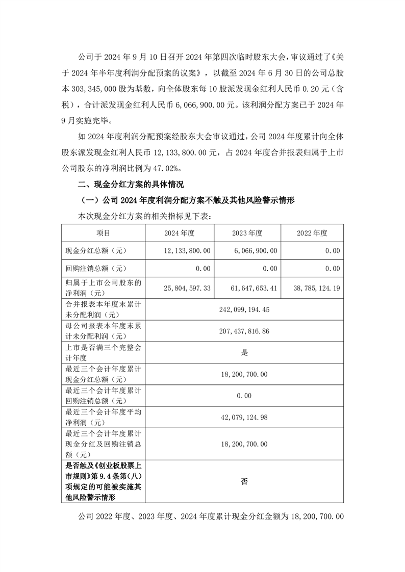 關(guān)于2024年度利潤分配預(yù)案的公告