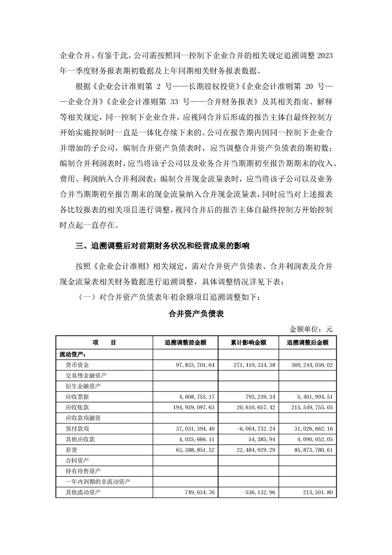 關于同一控下企業(yè)合并追溯調(diào)整財務數(shù)據(jù)的公告