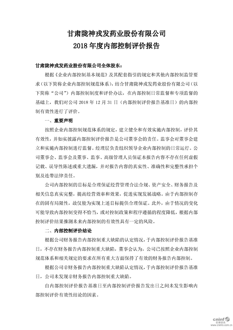 2018 年度內部控制評價報告