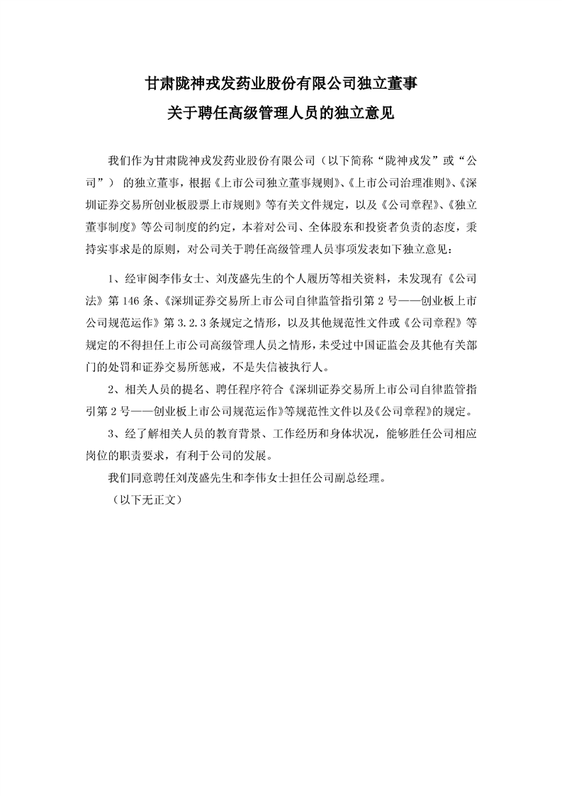 獨(dú)立董事關(guān)于聘任高級(jí)管理人員的獨(dú)立意見(jiàn)