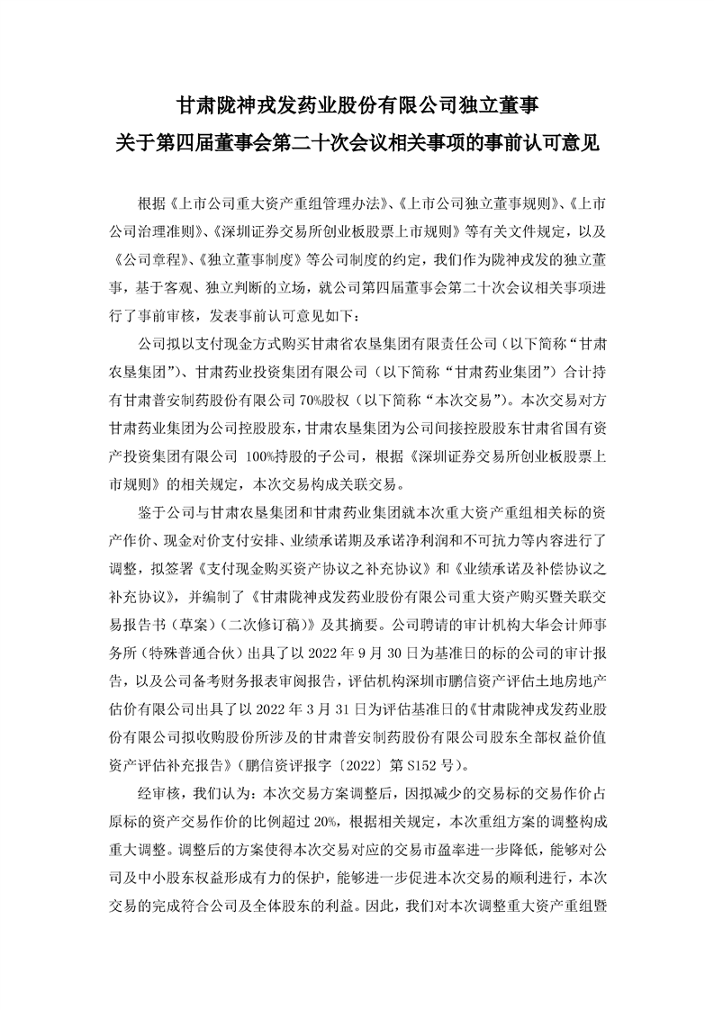 獨(dú)立董事關(guān)于第四屆董事會第二十次會議相關(guān)事項(xiàng)的事前認(rèn)可的意見