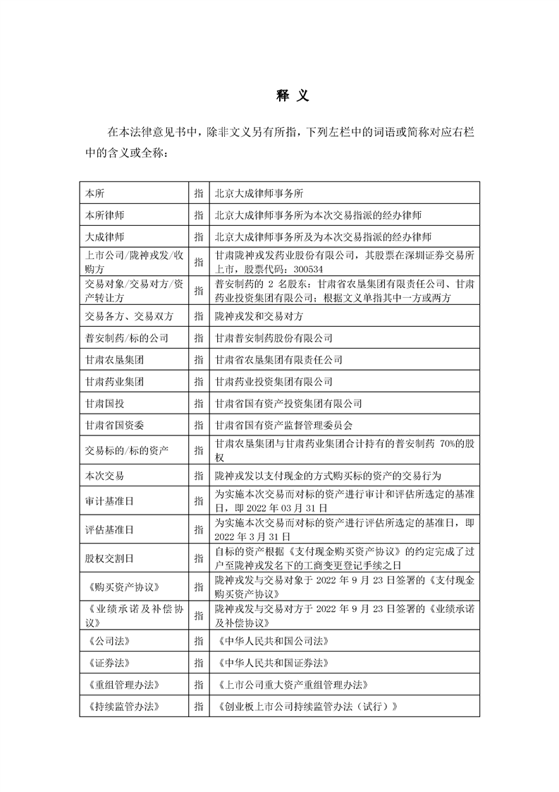 北京大成律師事務(wù)所關(guān)于隴神戎發(fā)重大資產(chǎn)購買暨關(guān)聯(lián)交易法律意見