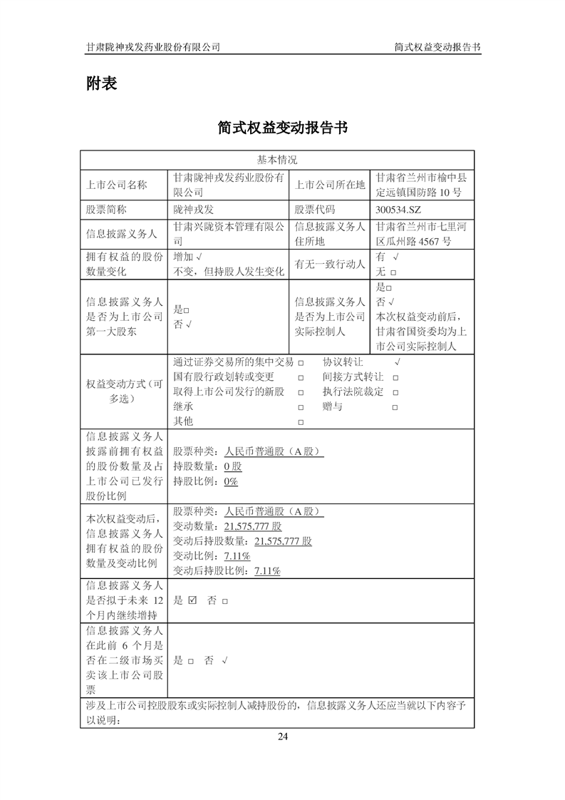 簡式權(quán)益變動報(bào)告書(興隴資本)