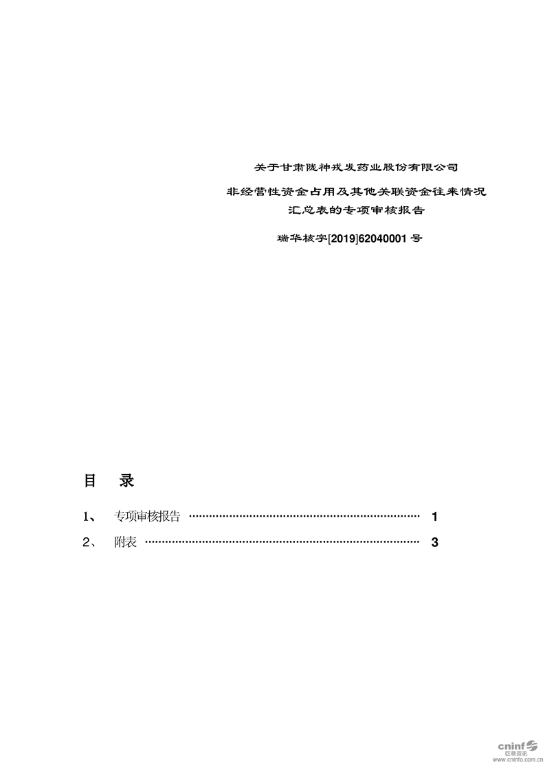 關于公司非經營性資金占用及其他關聯資金往來情況匯總表的專項審核報告