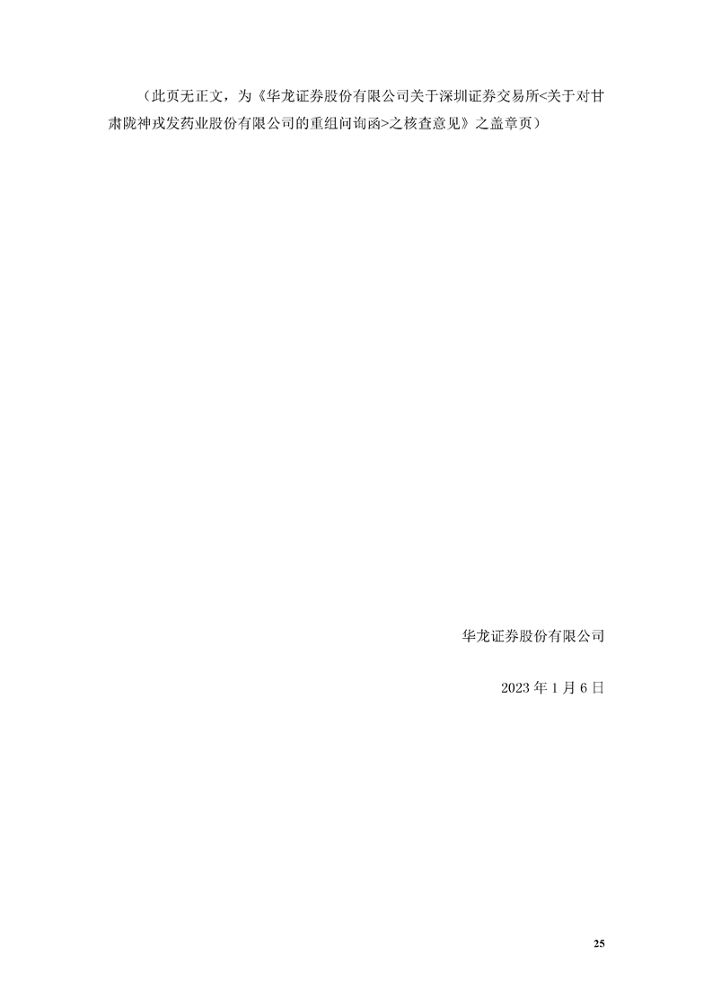 華龍證券股份有限公司關(guān)于深圳證券交易所《關(guān)于對(duì)甘肅隴神戎發(fā)藥業(yè)股份有限公司的重組問(wèn)詢函》之核查意見