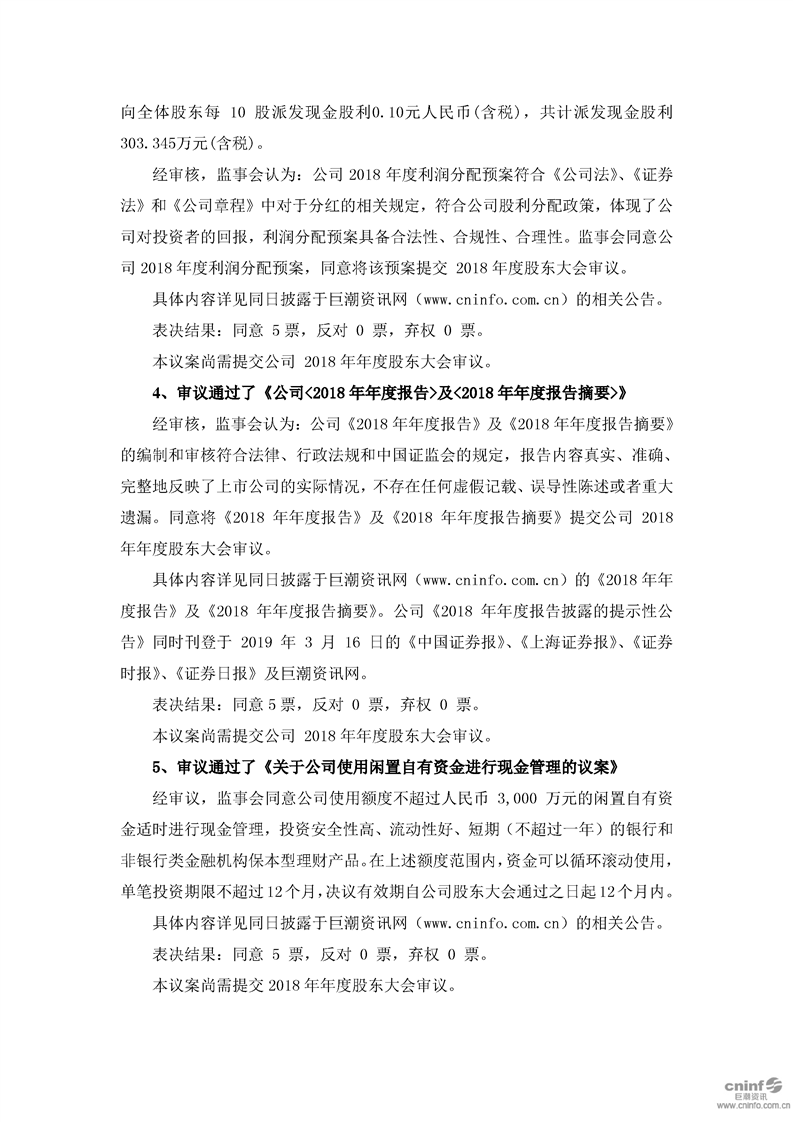 第三屆監(jiān)事會(huì)第六次會(huì)議決議公告