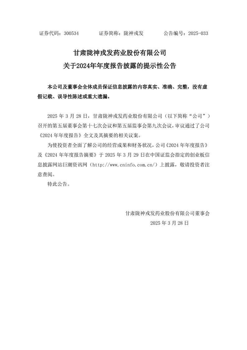 關(guān)于2024年年度報(bào)告披露的提示性公告